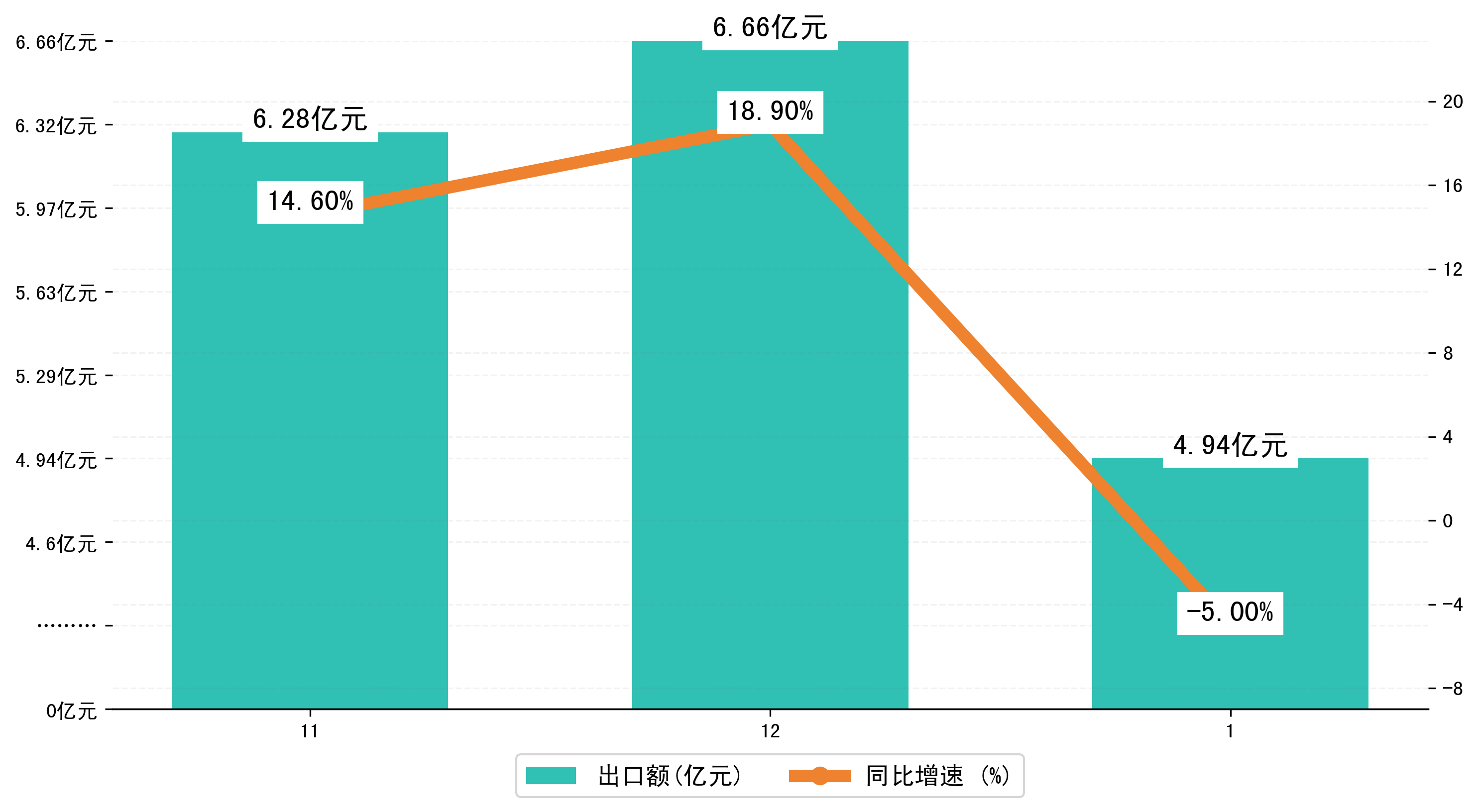 一、2025年1月乐山市单月出口总额及进出口差额统计分析