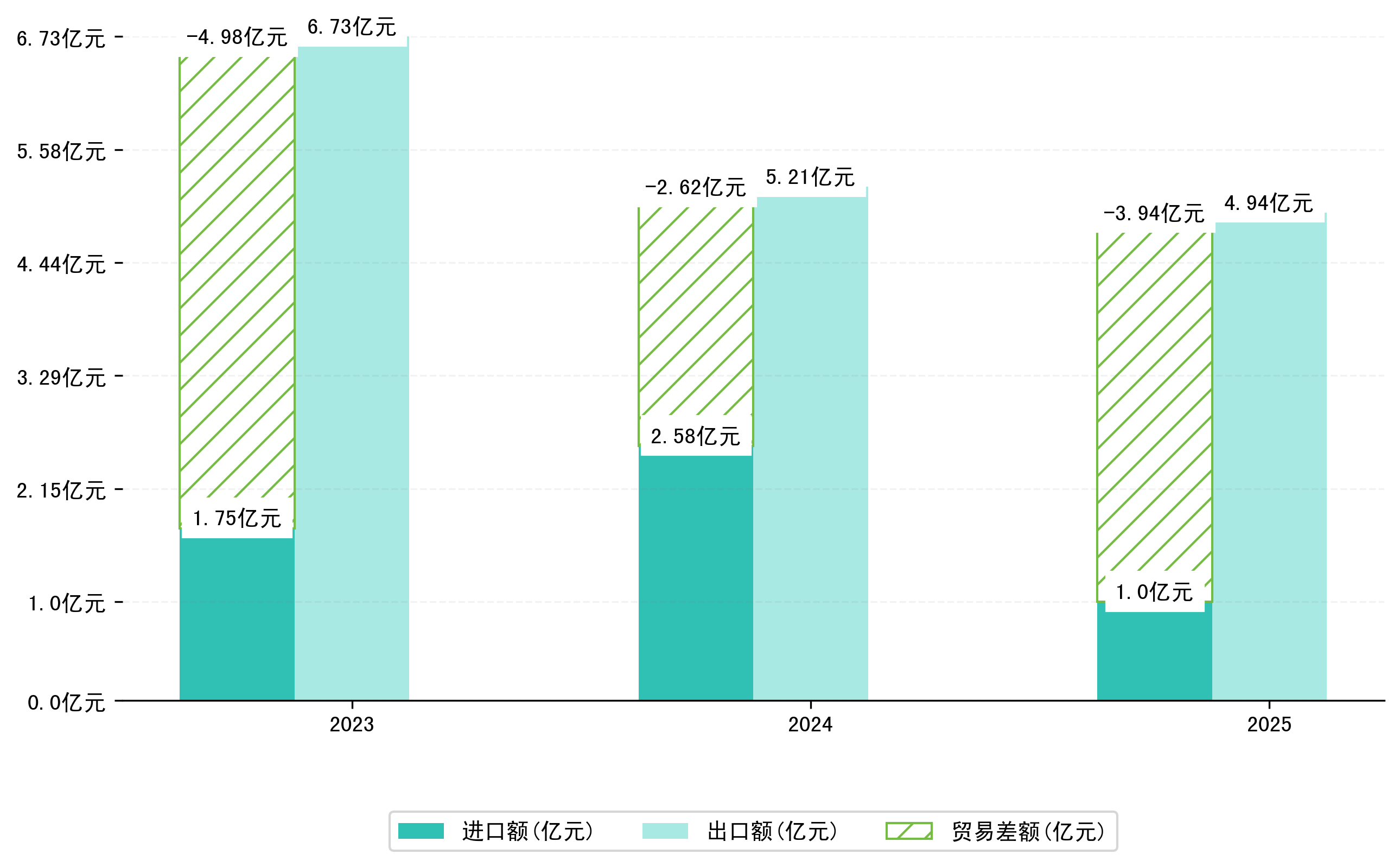以人民币计,2025年1-1月乐山市贸易差额为3,9411,0398万元(贸易顺差),相比上年同期增加了1,3173,0910万元,同比增加50.21%。