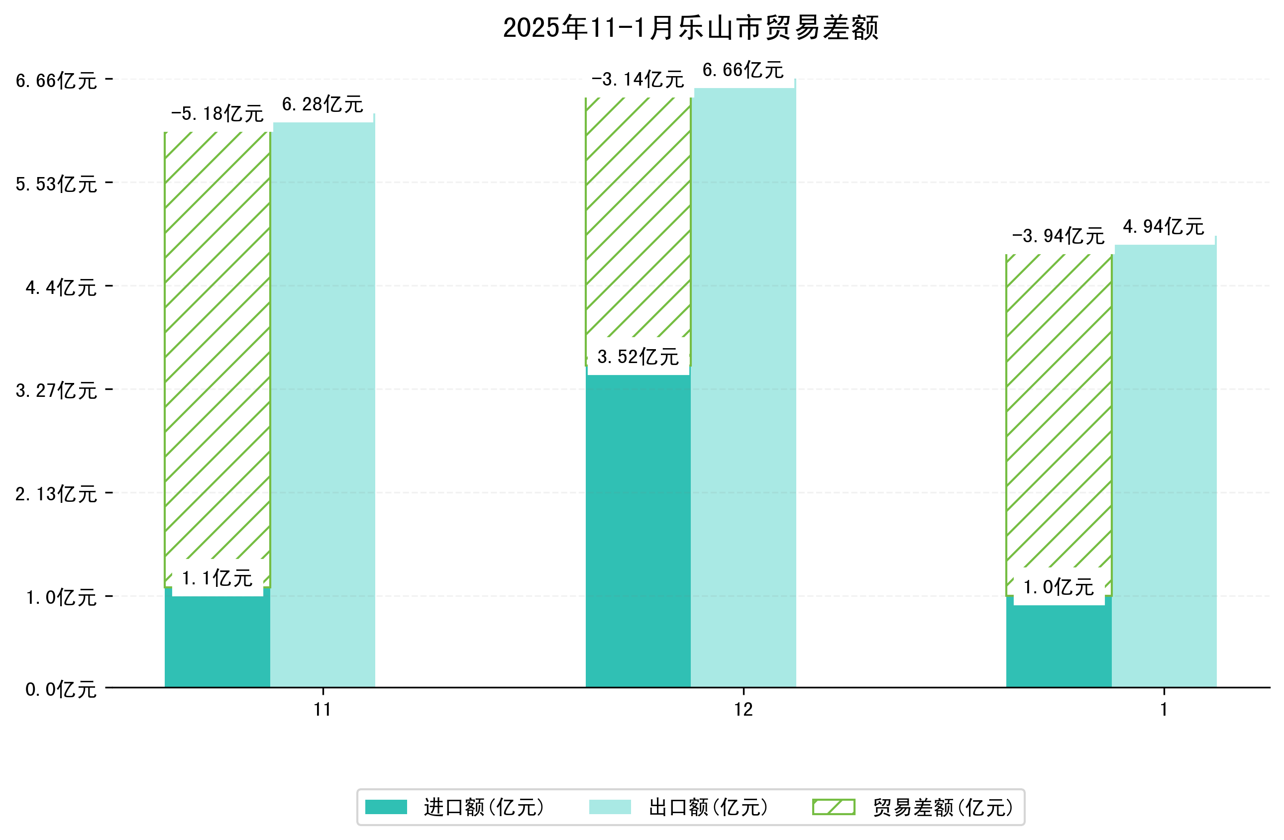 2025年1月乐山市进出口总额及进出口差额统计分析