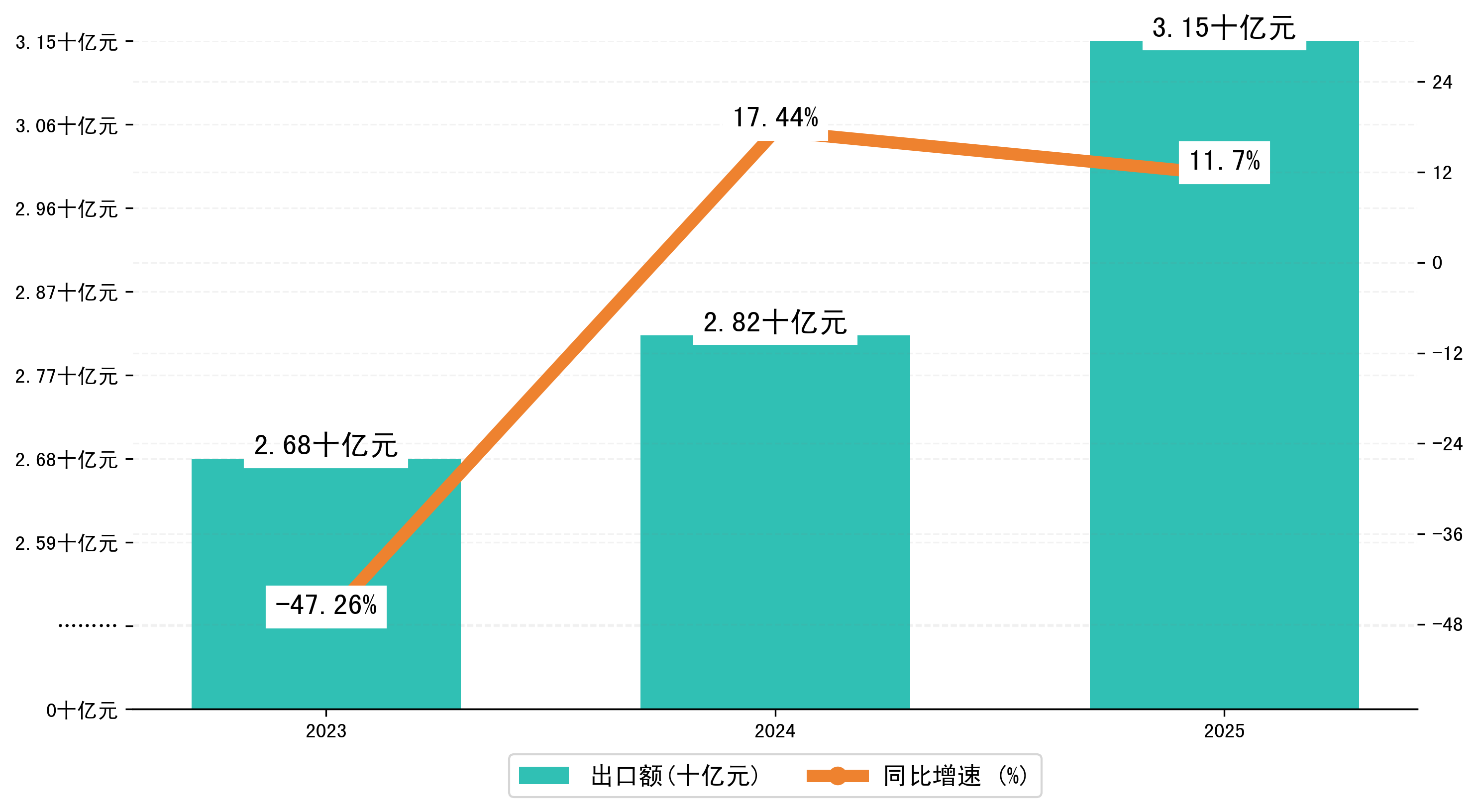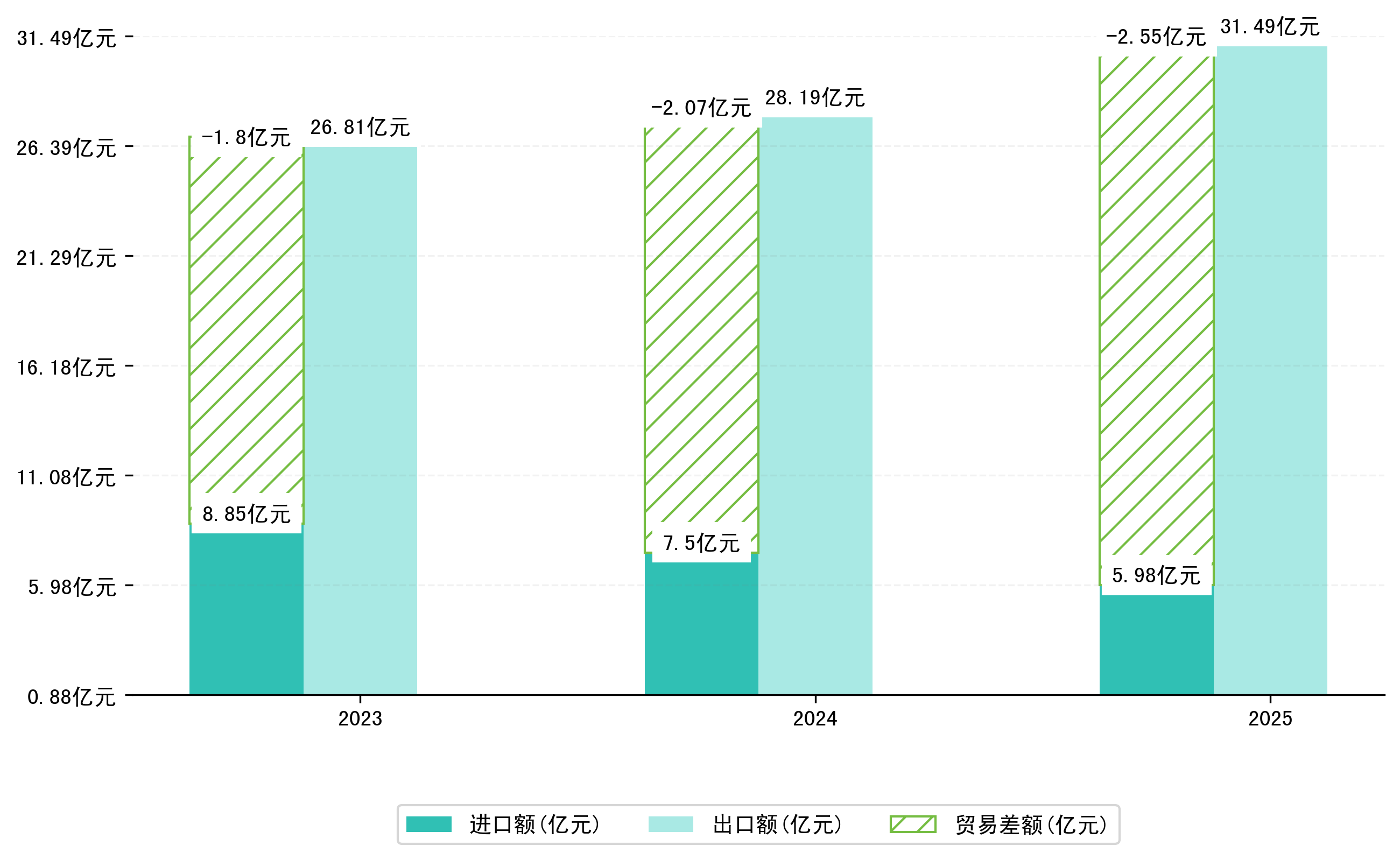 以美元计,2025年1-6月乐山市贸易差额为3,5482,5098万美元(贸易顺差),相比上年同期增加了6373,7242万美元,同比增加21.9%。