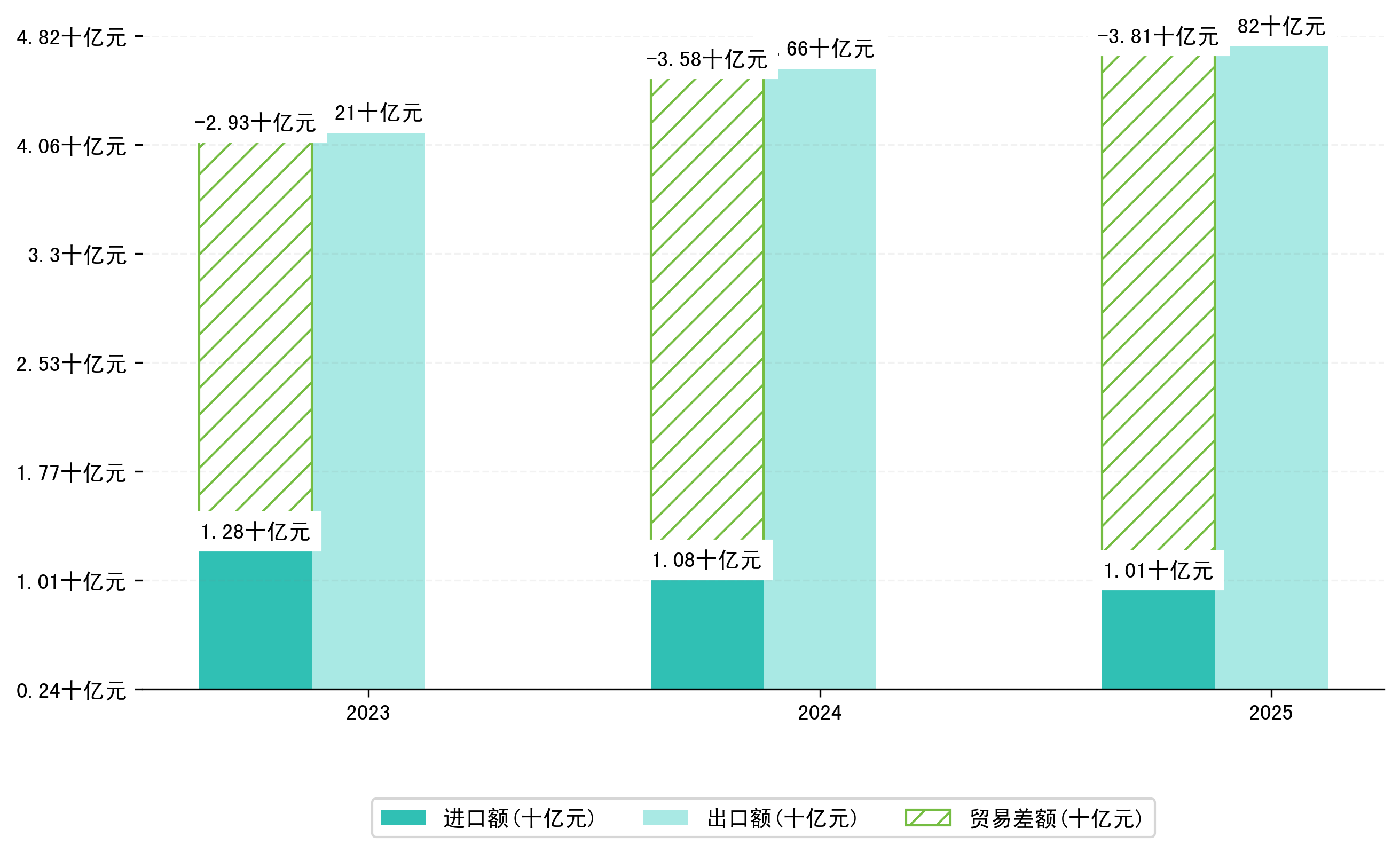 以美元计,2025年1-9月乐山市贸易差额为5,3122,3199万美元(贸易顺差),相比上年同期增加了2779,9663万美元,同比增加5.52%。