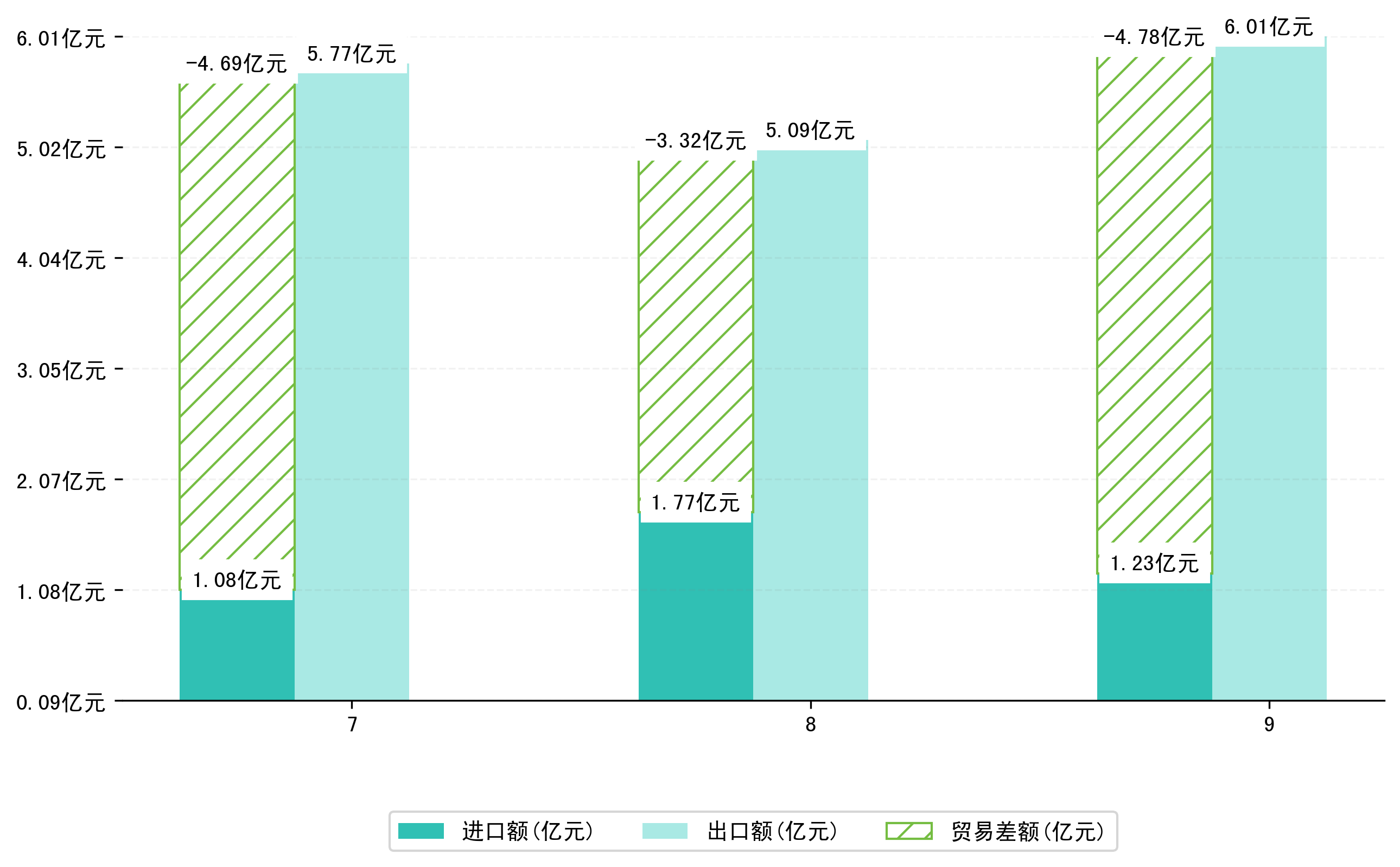 以美元计,2025年9月乐山市贸易差额为6699,0634万美元(贸易顺差),相比上月增加了2083,9692万美元;相比上年同期减少了125,4275万美元,同比减少-1.84%。