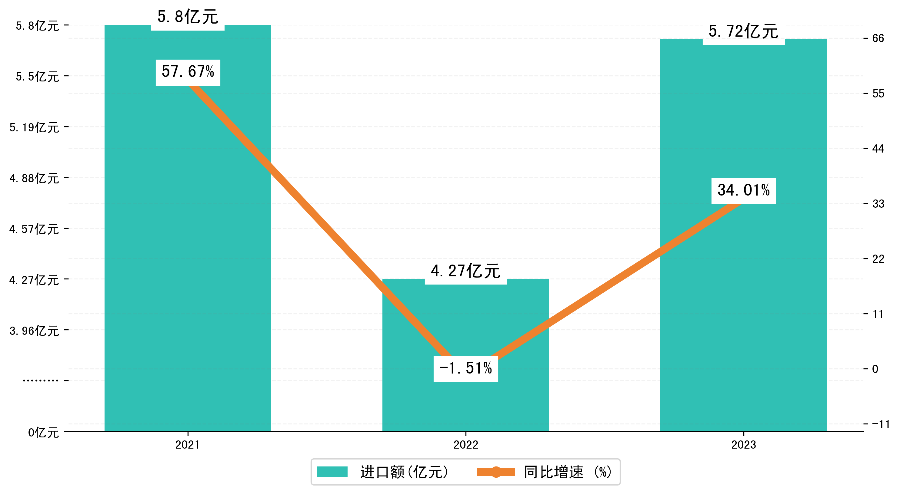 以人民币计,2023年1-4月乐山市进口额为5,7159.4809万元,相比上年同期增加了1,4505.2658万元,同比增加了33.90%。