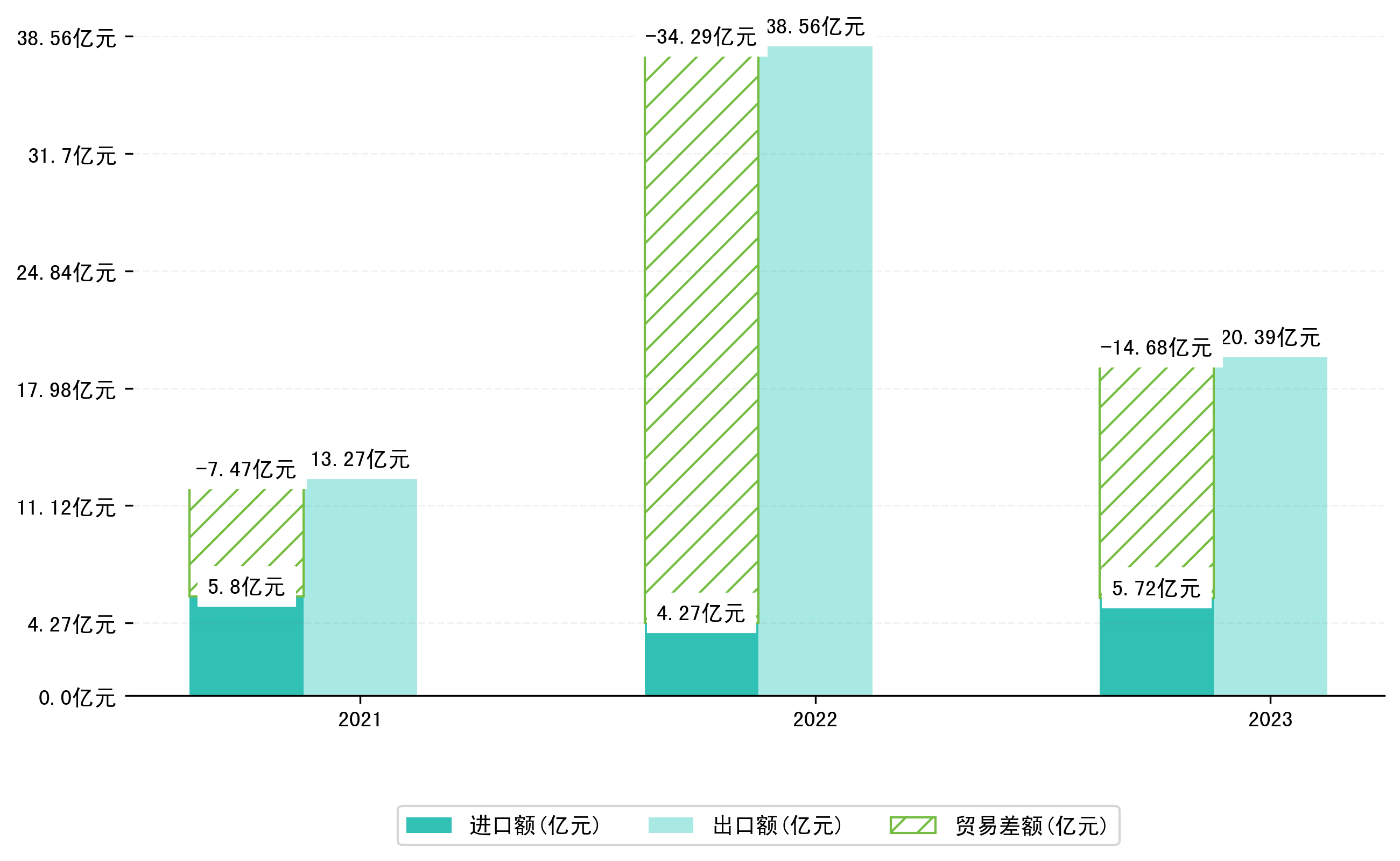 以美元计,2023年4月乐山市贸易差额为3362,8948万美元(贸易顺差),相比上月减少了1450,0457万美元;相比上年同期减少了7105,9723万美元,同比减少-67.88%。