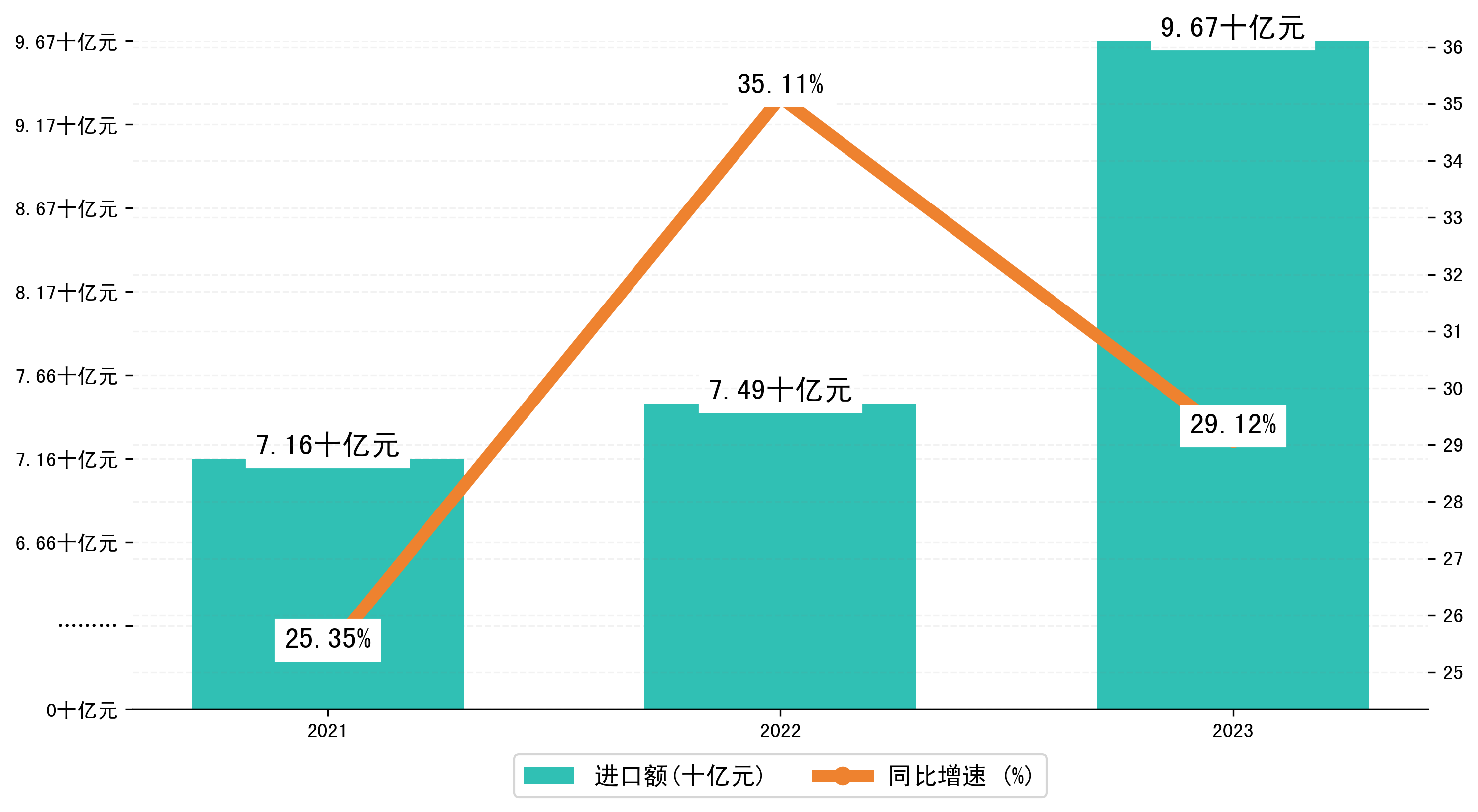 以人民币计,2023年1-2月连云港市进口额为96,7411.5687万元,相比上年同期增加了21,8155.7187万元,同比增加了28.00%。
