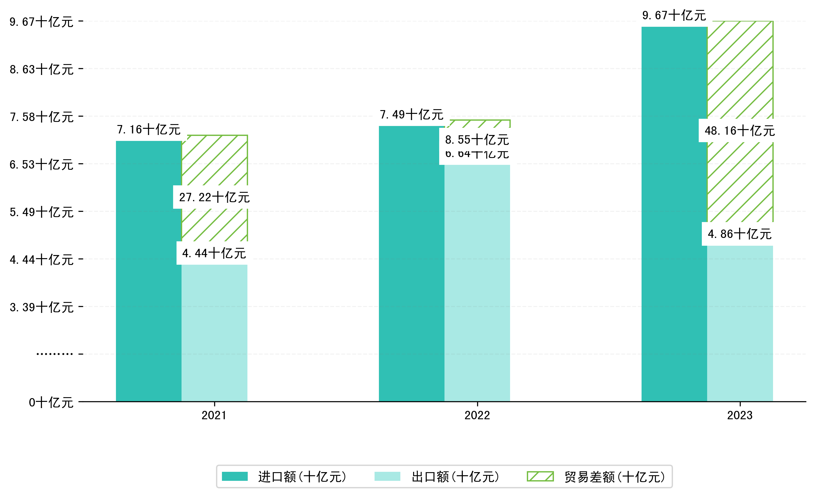 以人民币计,2023年1-2月连云港市贸易差额为48,1586,0095万元(贸易逆差),相比上年同期减少了39,6126,0397万元,同比减少463.52%。