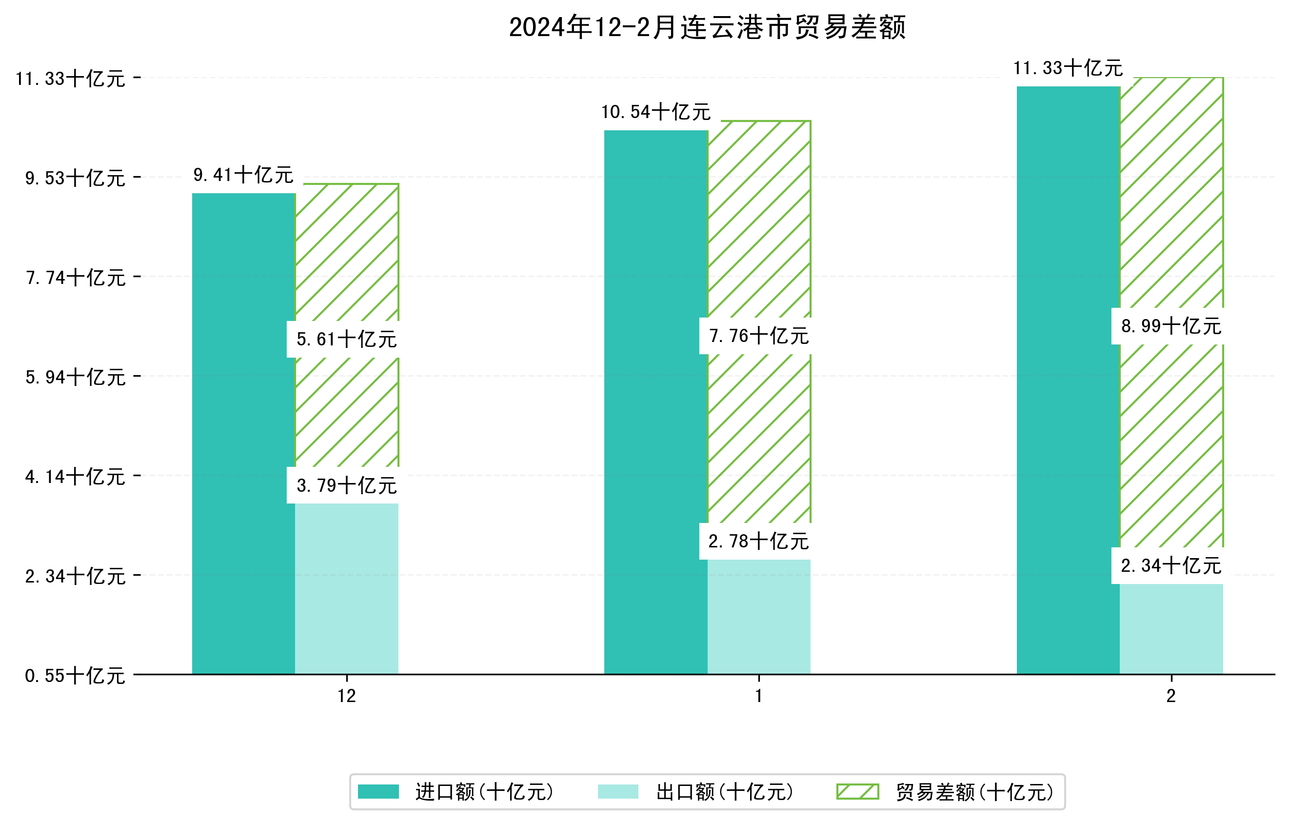2024年2月连云港市进出口总额及进出口差额统计分析