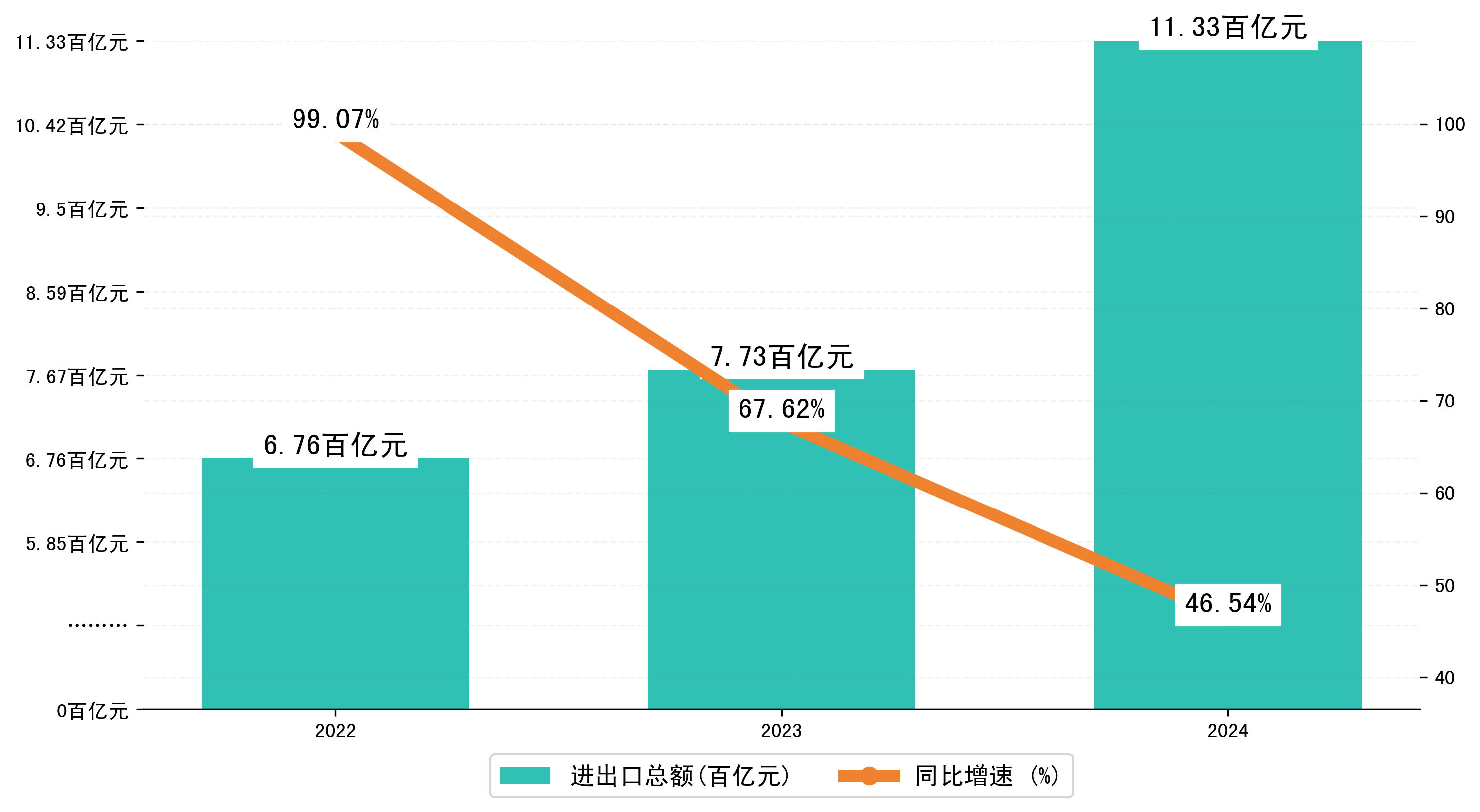 以人民币计,2024年1-8月连云港市进出口总额为1133,2377.6621万元,相比上年同期增加了359,9255.8771万元,同比增加了46.30%。