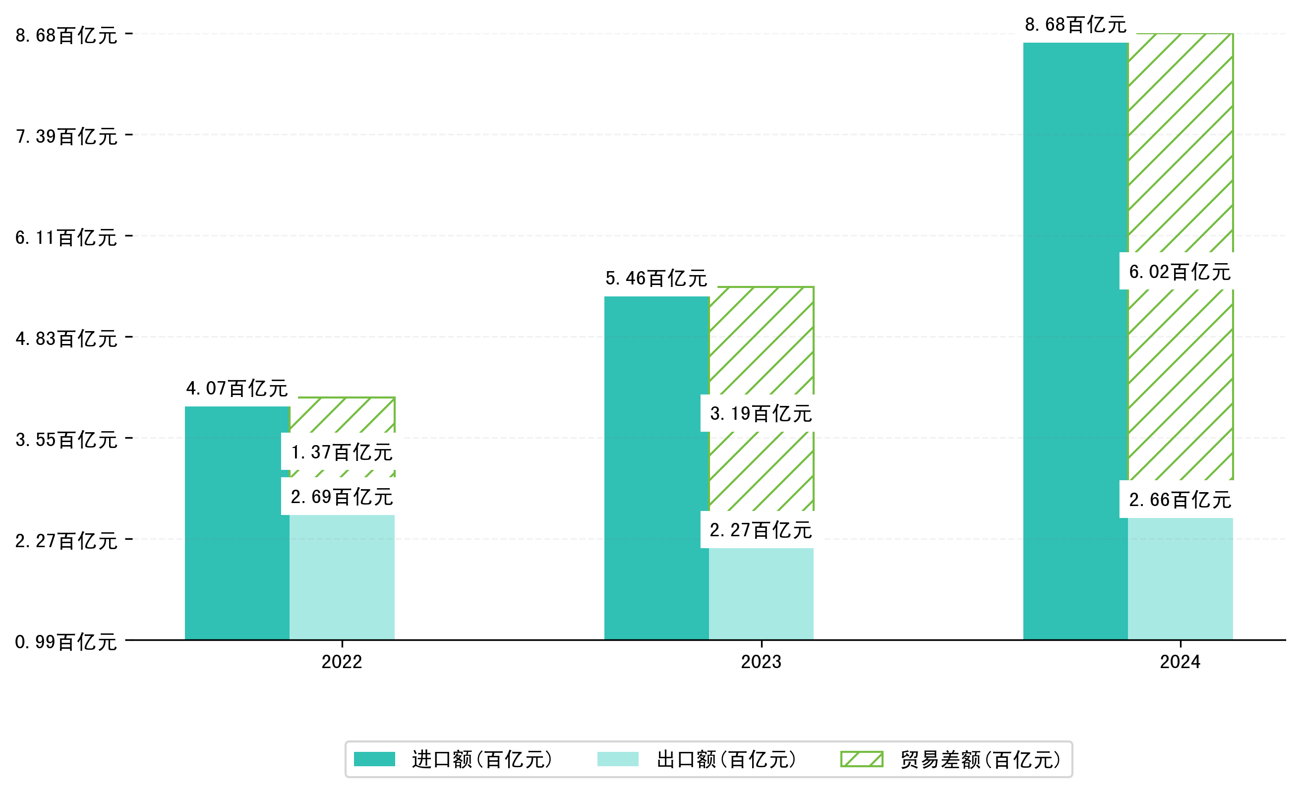 以人民币计,2024年8月连云港市贸易差额为63,1866,7714万元(贸易逆差),相比上月减少了8,6738,3965万元,即1,1954,8536万美元;相比上年同期增加了21,1717,4835万元,同比增加-25.1%。