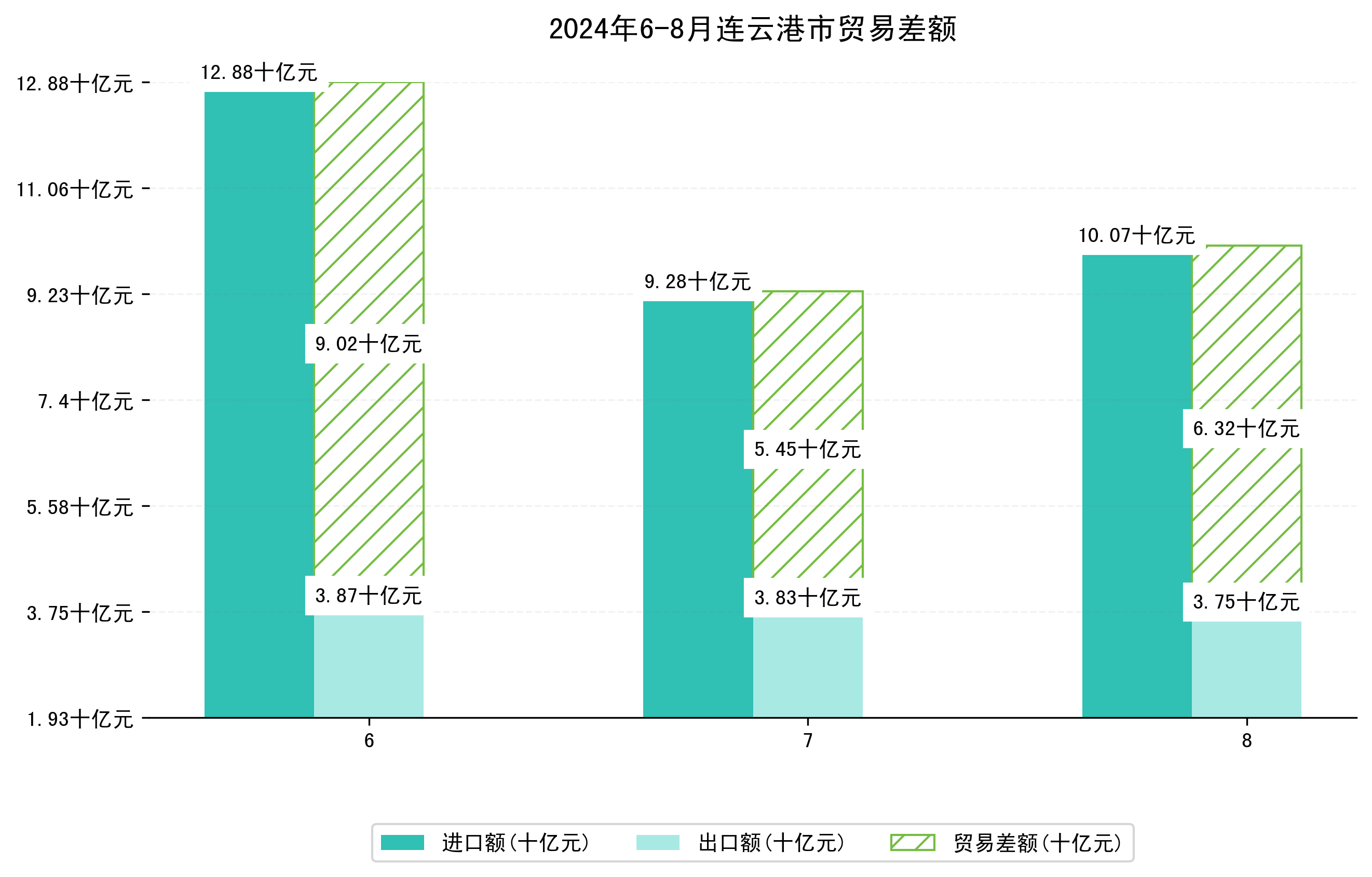 2024年8月连云港市进出口总额及进出口差额统计分析