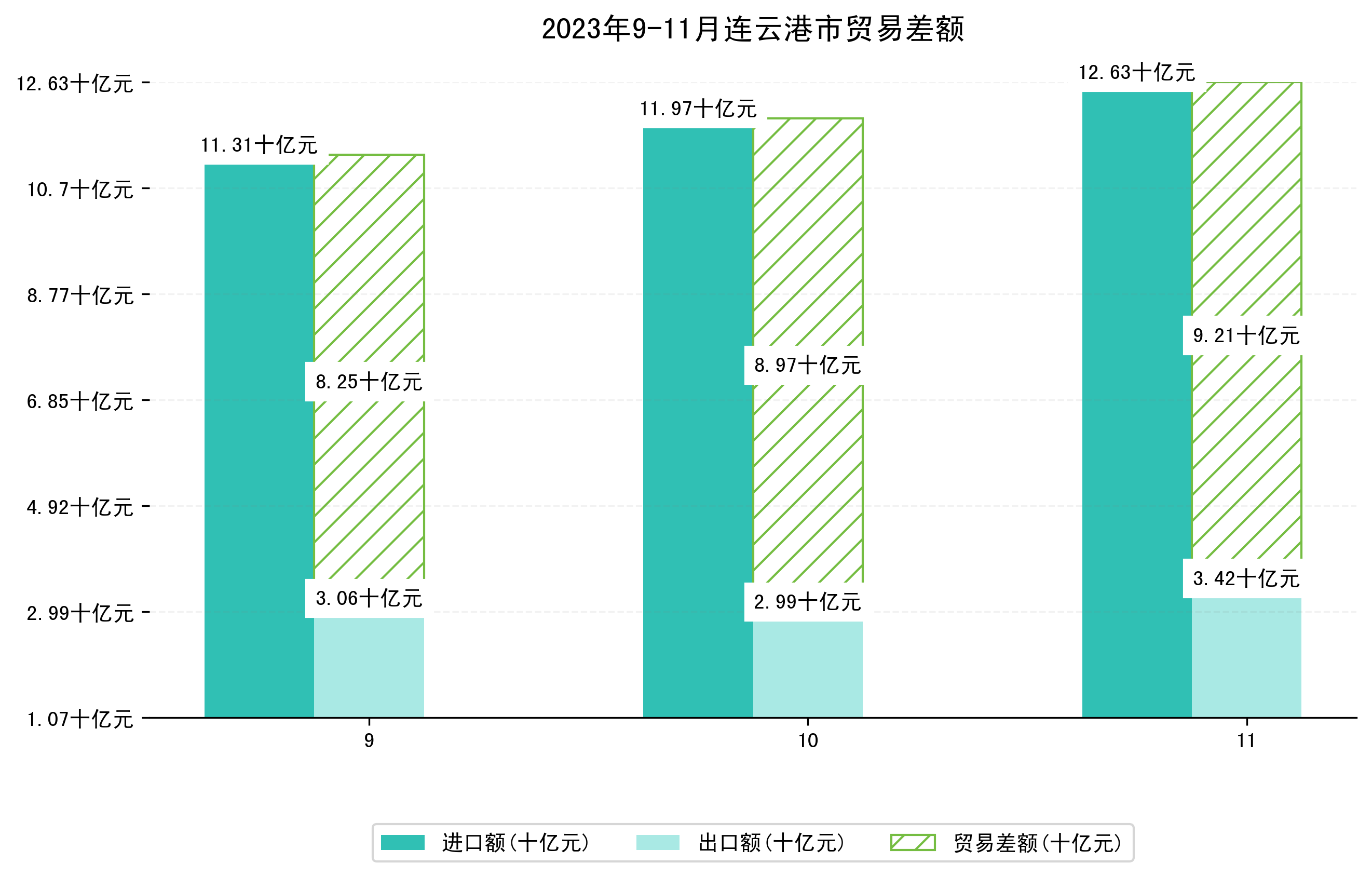 (图一:2023年9-11月连云港市进出口总额)