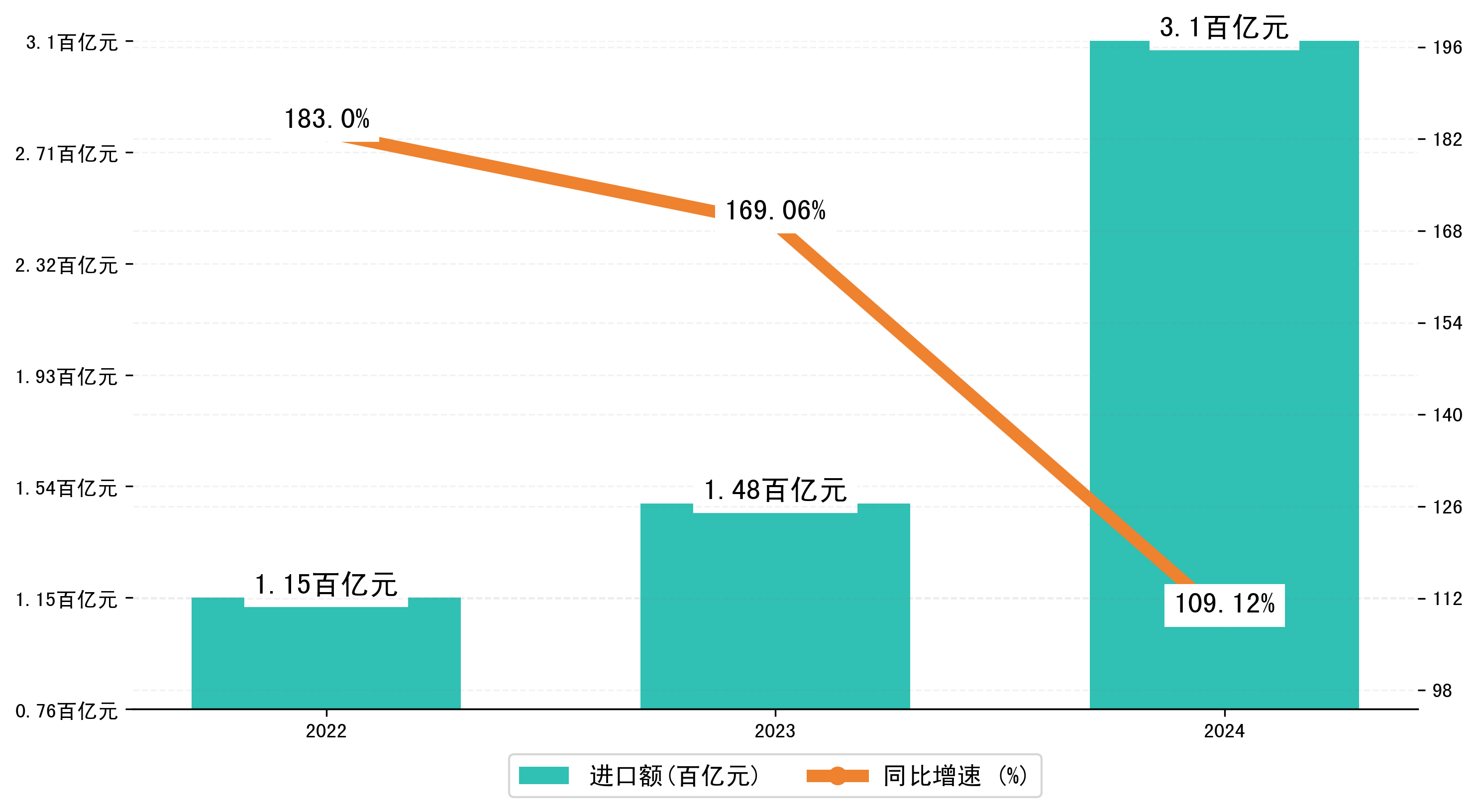 以人民币计,2024年1-3月连云港市进口额为310,4726.2912万元,相比上年同期增加了162,0062.1508万元,同比增加了113.50%。