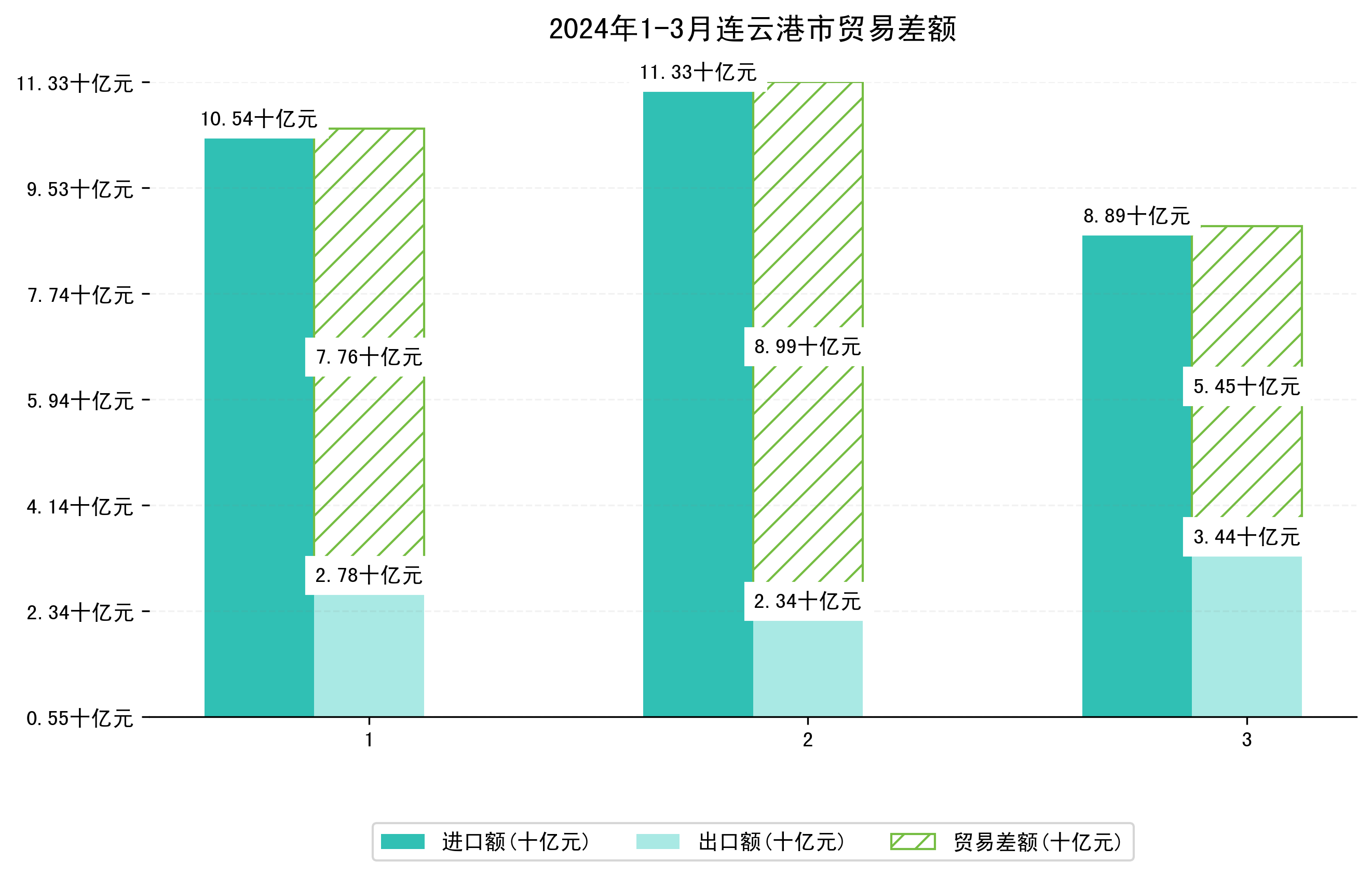 2024年3月连云港市进出口总额及进出口差额统计分析