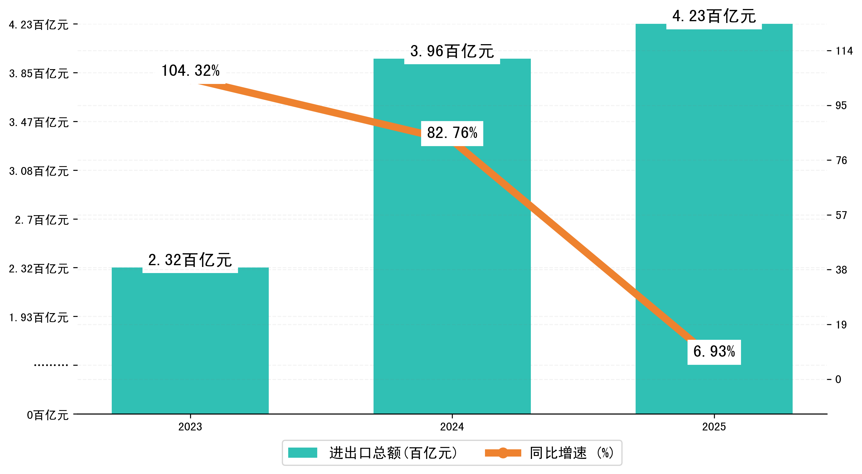以人民币计,2025年1-3月连云港市进出口总额为423,4801.8454万元,相比上年同期增加了27,4326.0923万元,同比增加了6.60%。