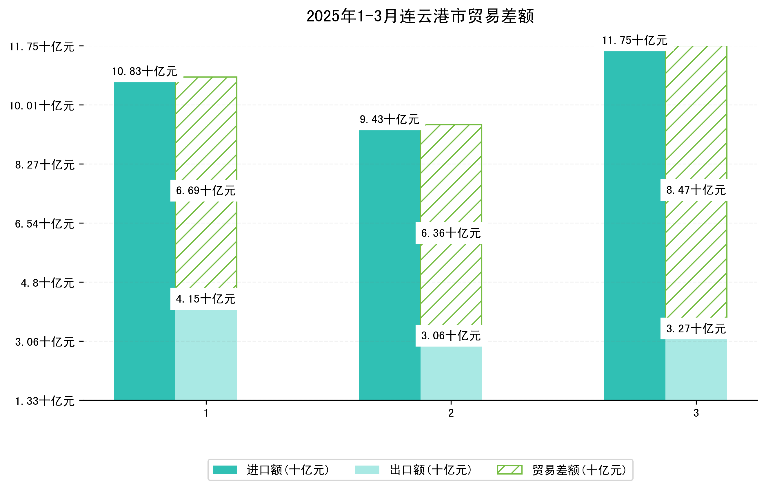 2025年3月连云港市进出口总额及进出口差额统计分析