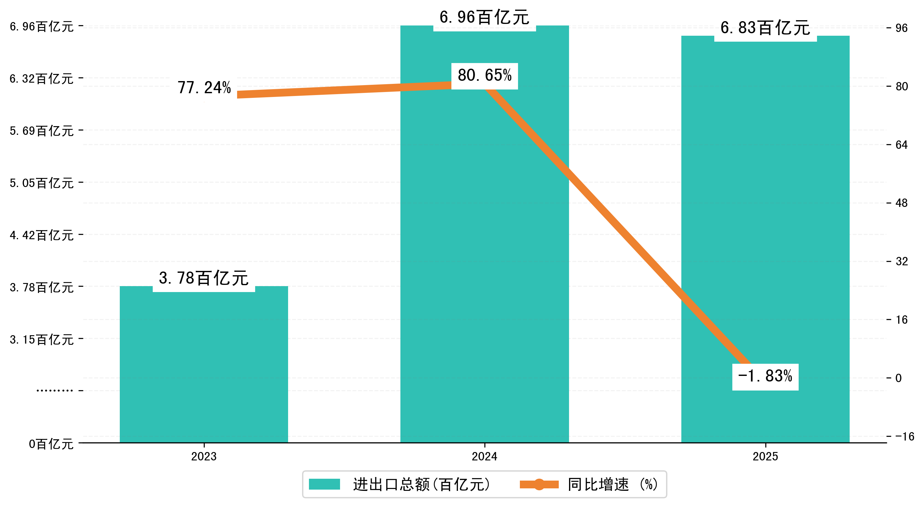 以人民币计,2025年1-5月连云港市进出口总额为683,0890.8766万元,相比上年同期减少了12,7094.8351万元,同比减少了-1.60%。
