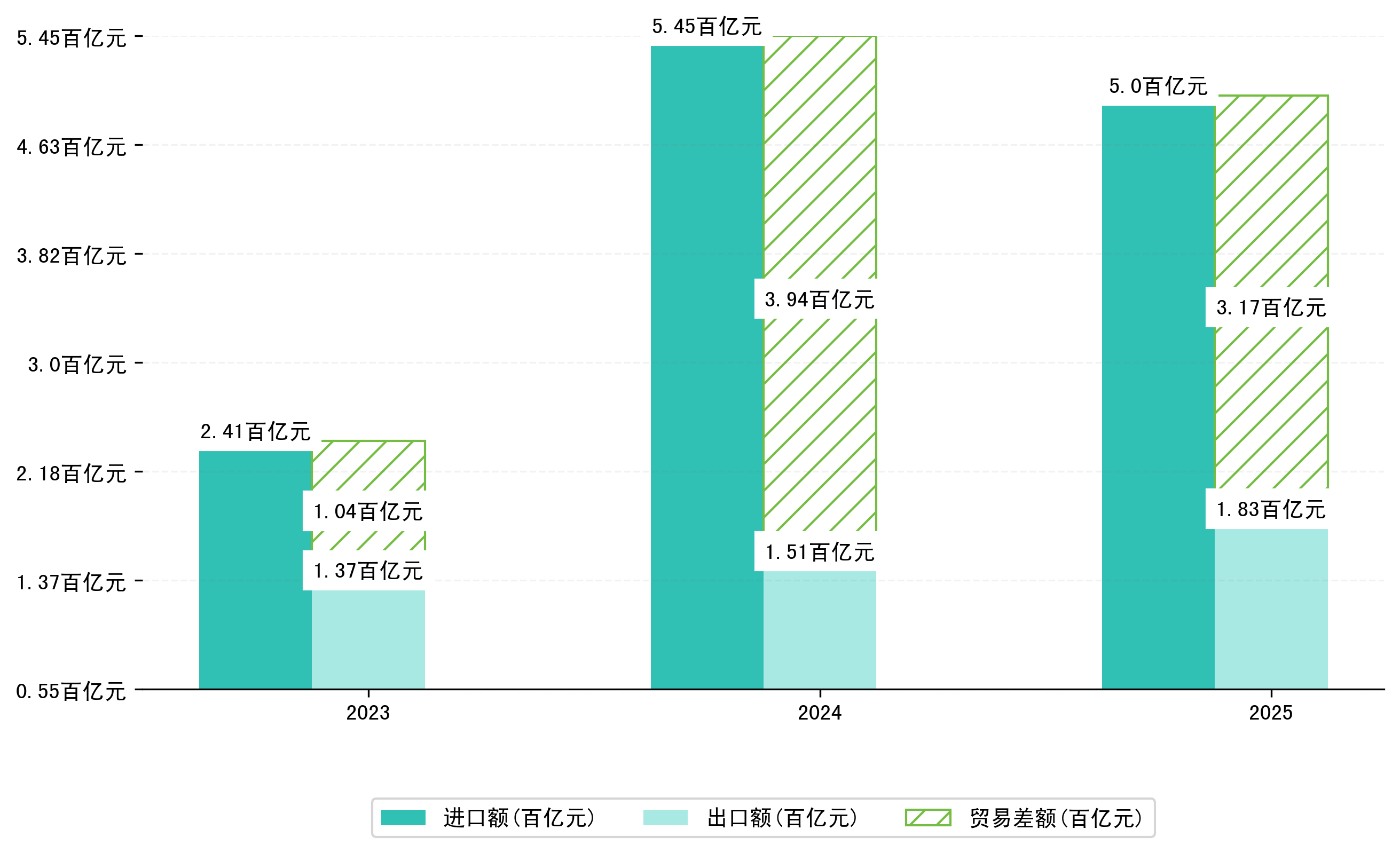 以人民币计,2025年5月连云港市贸易差额为33,8062,8274万元(贸易逆差),相比上月增加了34,8945,4764万元,即4,8815,6664万美元;相比上年同期增加了53,0337,4410万元,同比增加-61.07%。