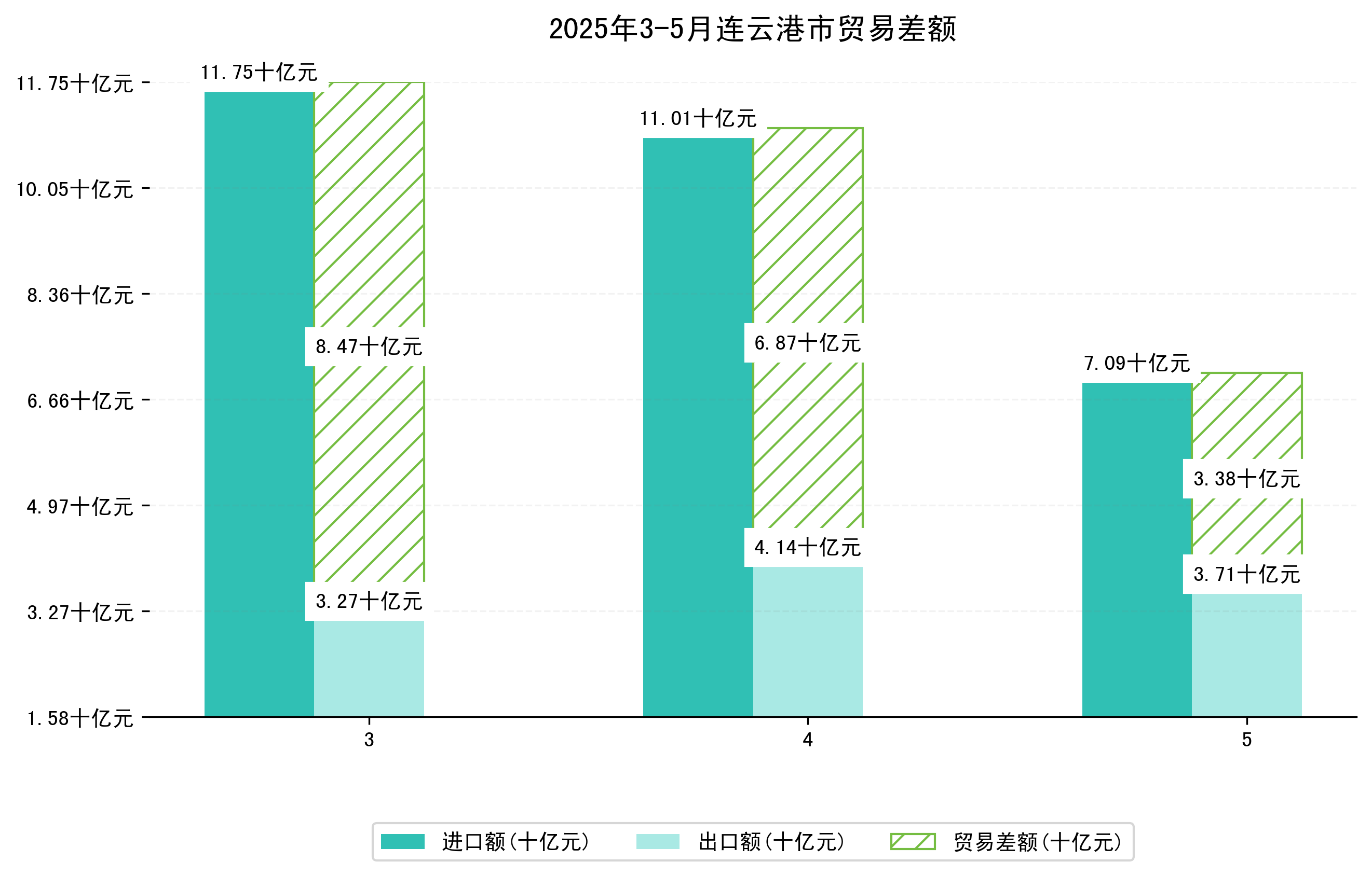 2025年5月连云港市进出口总额及进出口差额统计分析