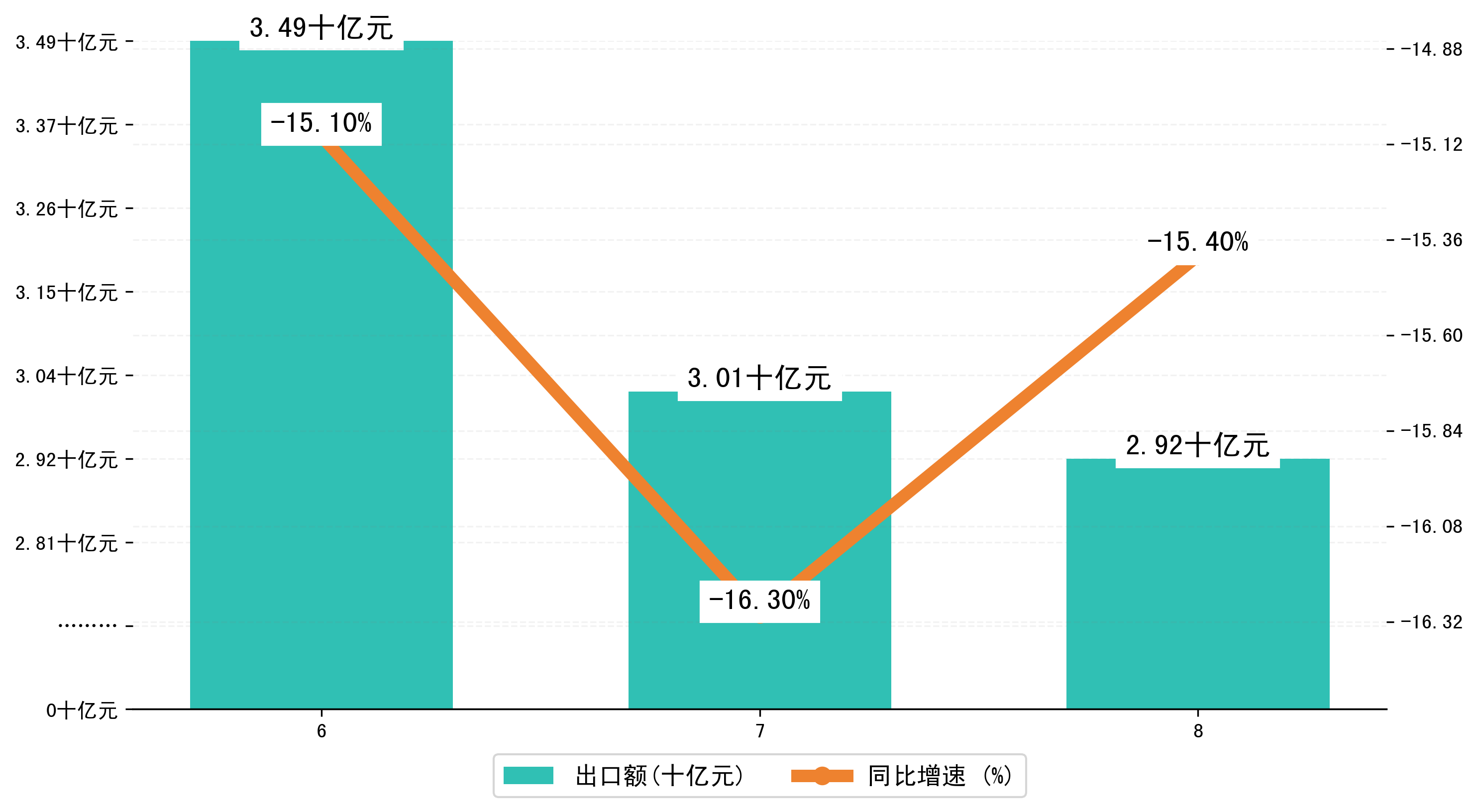 以美元计,2023年1-8月连云港市出口额为32,6478.491万美元,相比上年同期减少了8,7885.8352万美元,同比减少-20.90%。