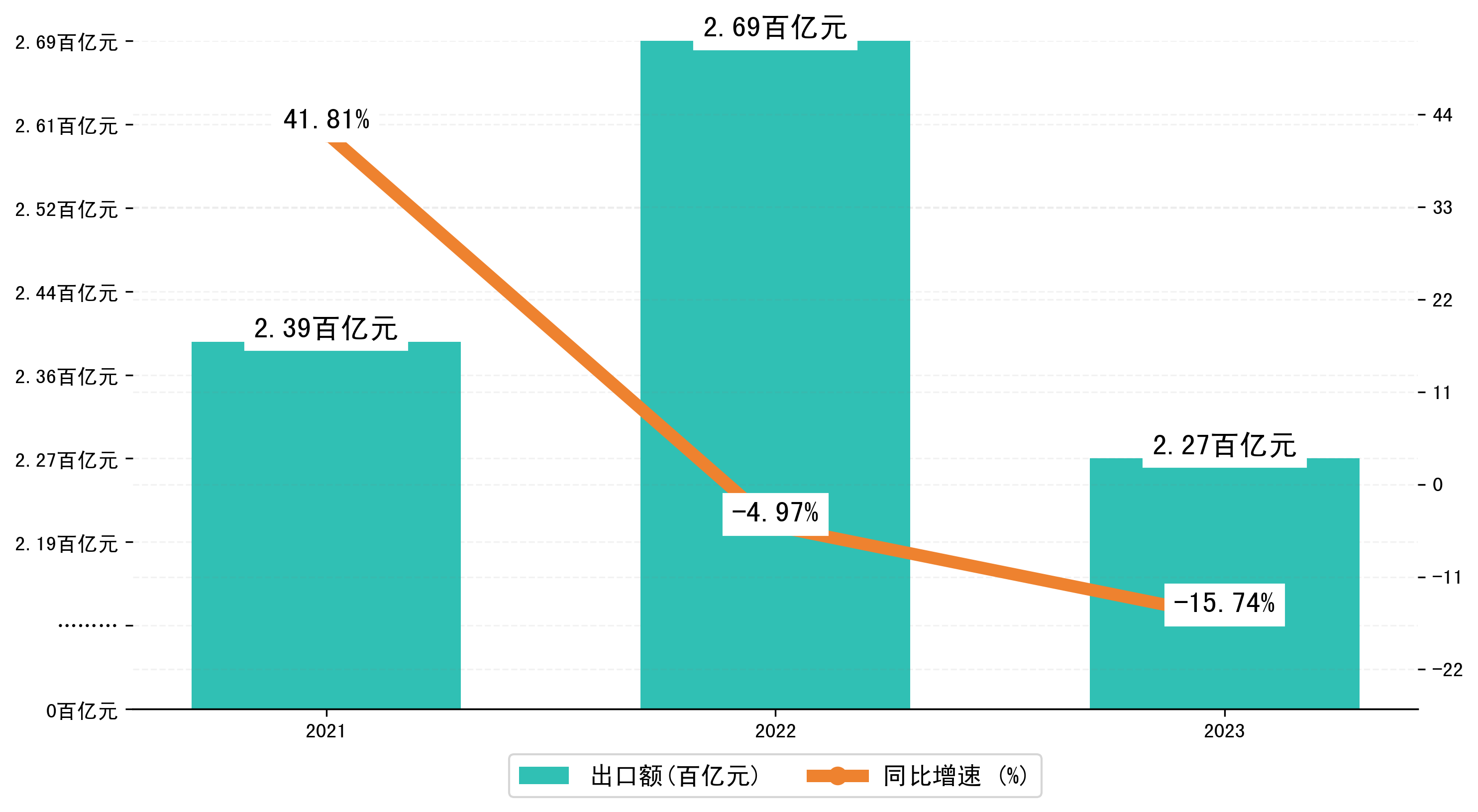 以人民币计,2023年1-8月连云港市出口额为227,0422.3997万元,相比上年同期减少了42,4195.6757万元,同比减少了-15.40%。