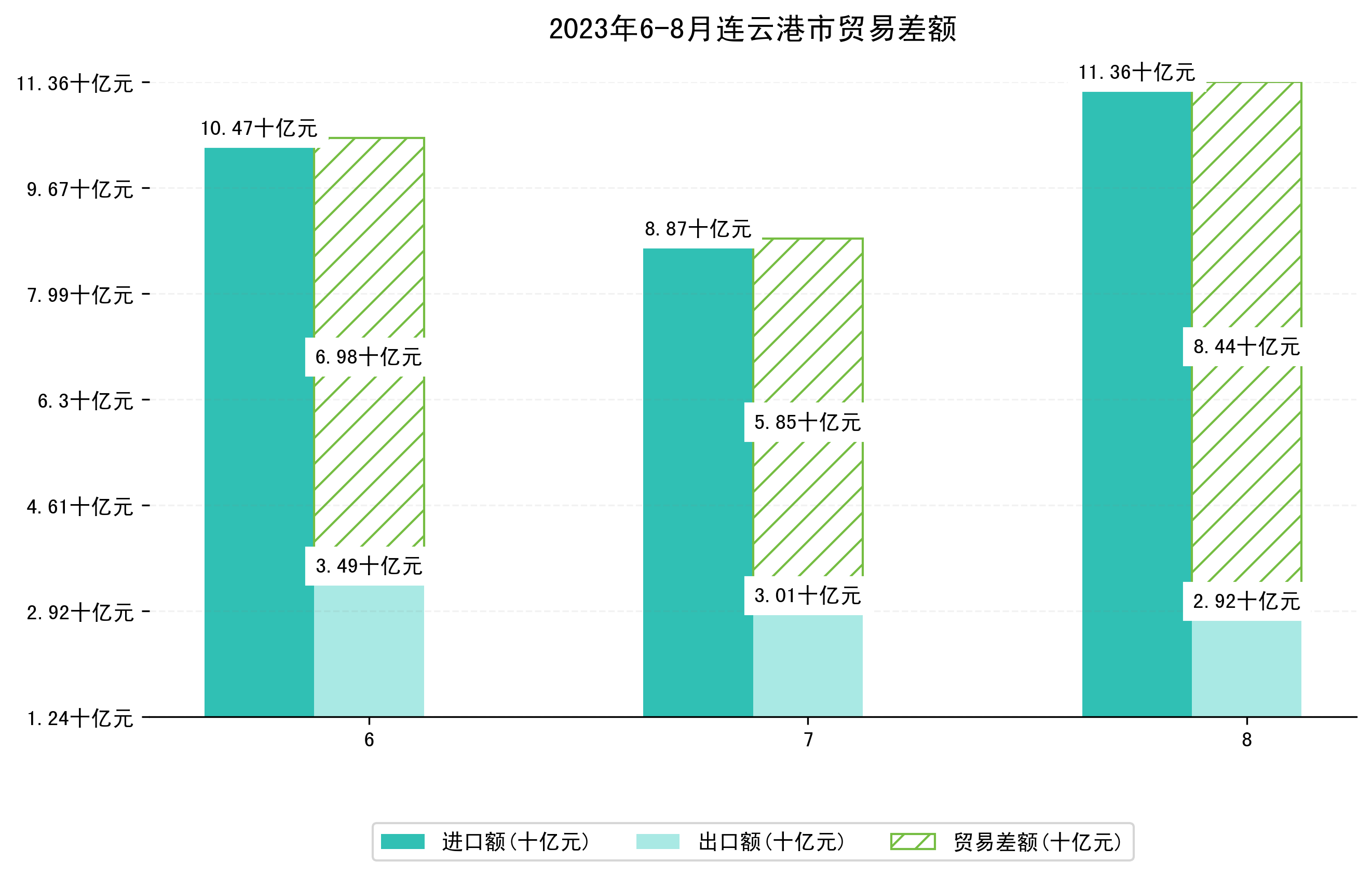 2023年8月连云港市进出口总额及进出口差额统计分析