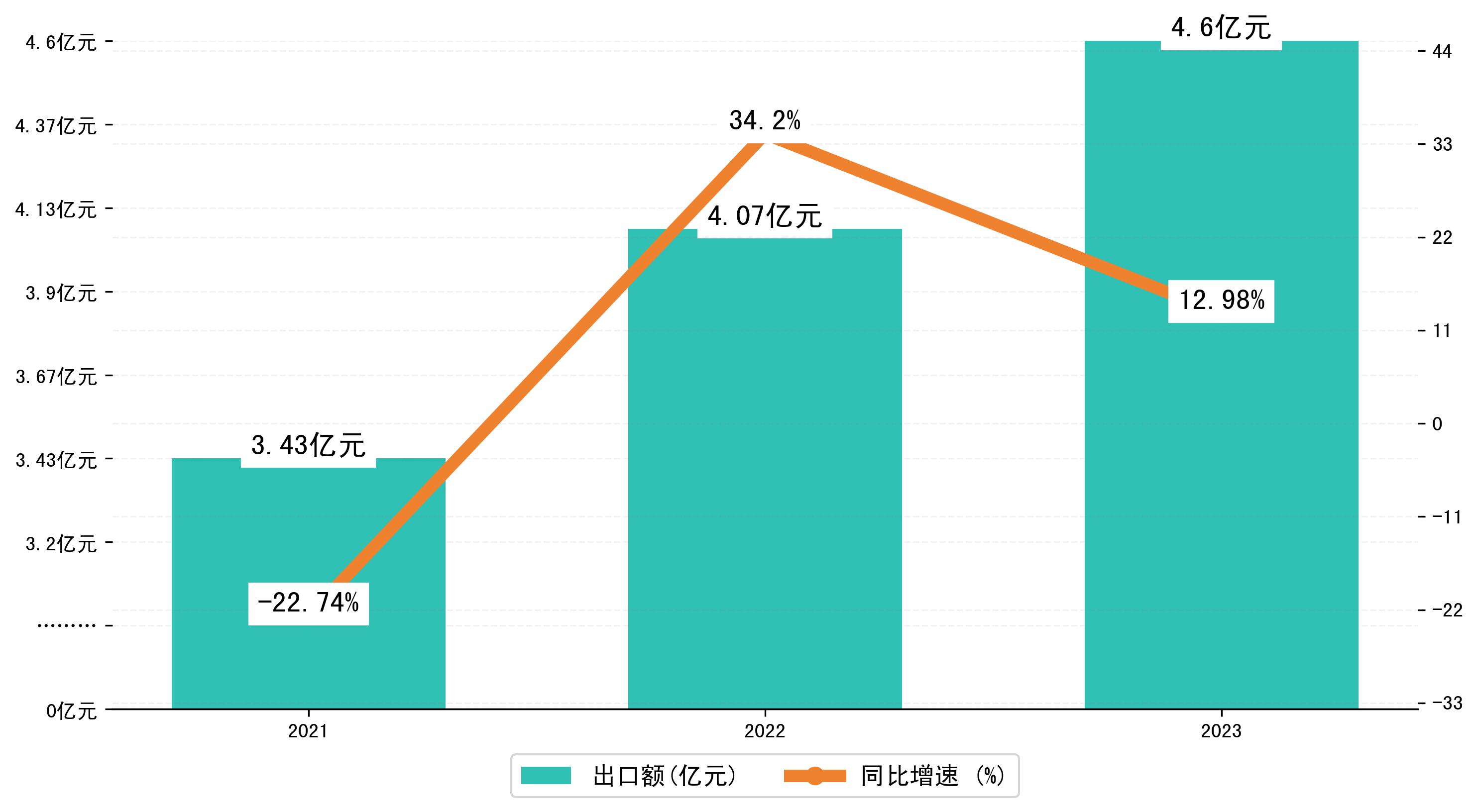以美元计,2023年1月铜陵市出口额为6576.4132万美元,相比上月增加了523.1194万美元;相比上年同期增加了186.1057万美元,同比增加2.90%。