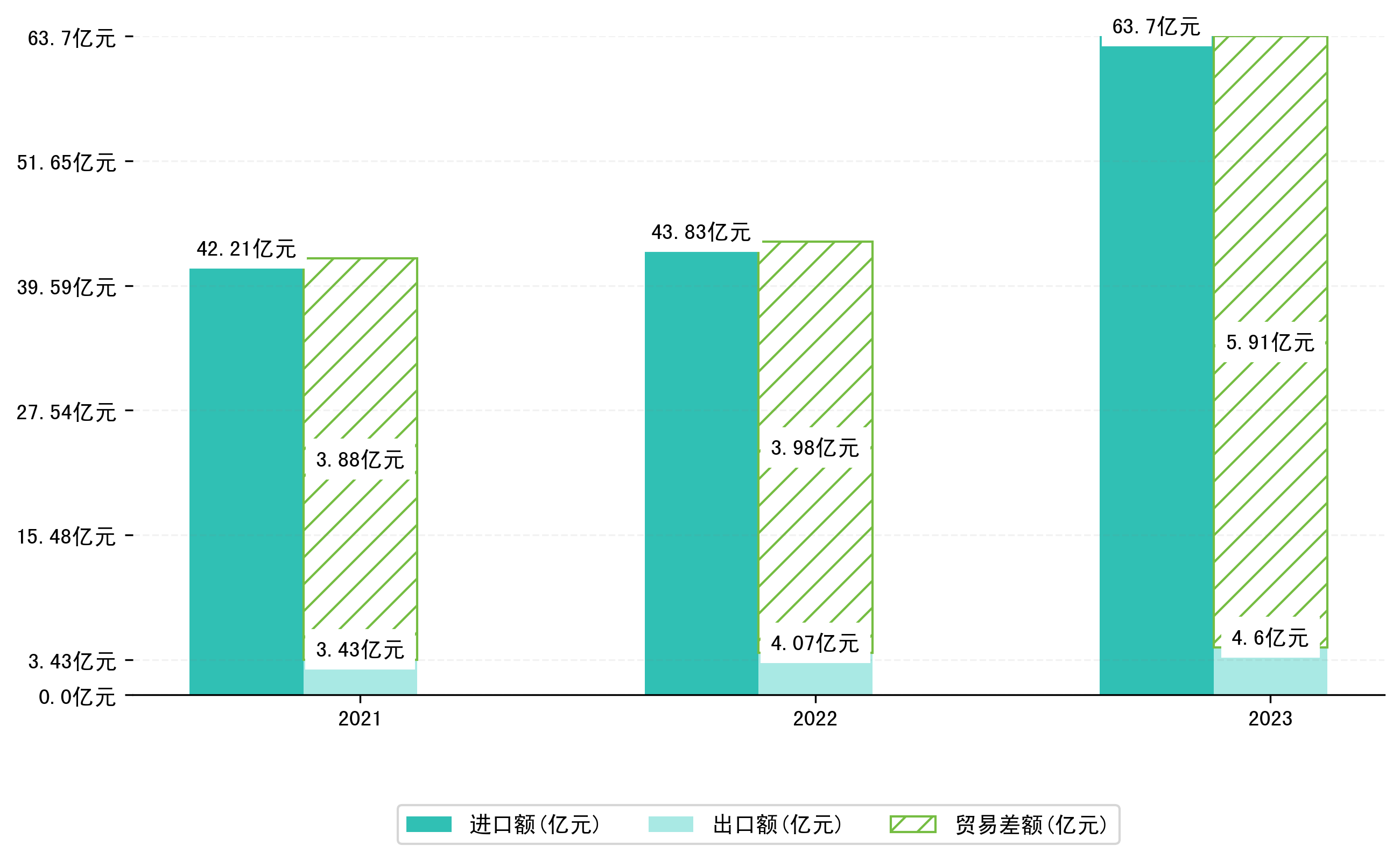 以人民币计,2023年1月铜陵市进口额为63,7000.4841万元,相比上月增加了28,9068.5525万元;相比上年同期增加了19,8694.833万元,同比增加了43.60%。