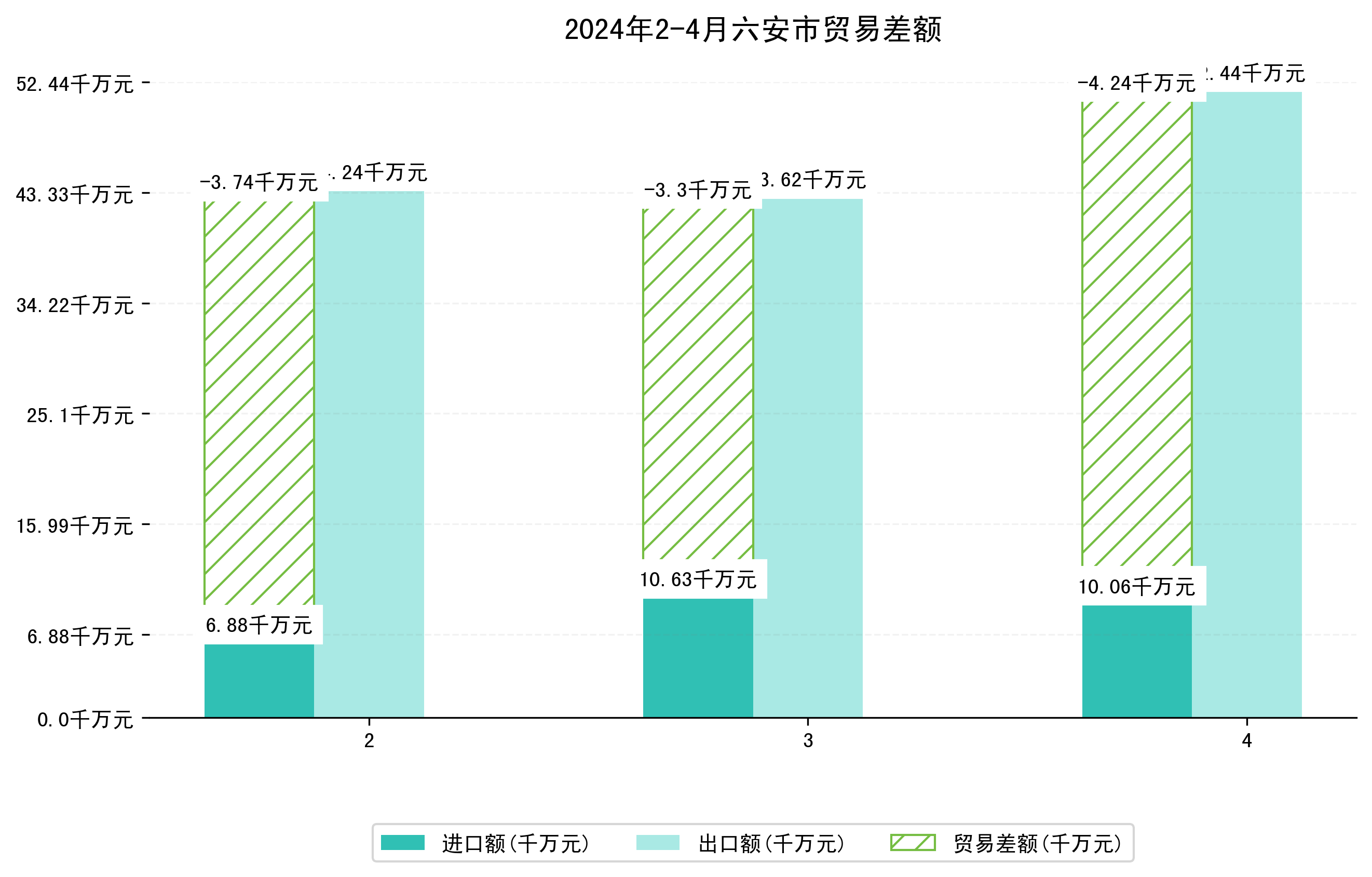 (图四:2024年2-4月六安市贸易差额)