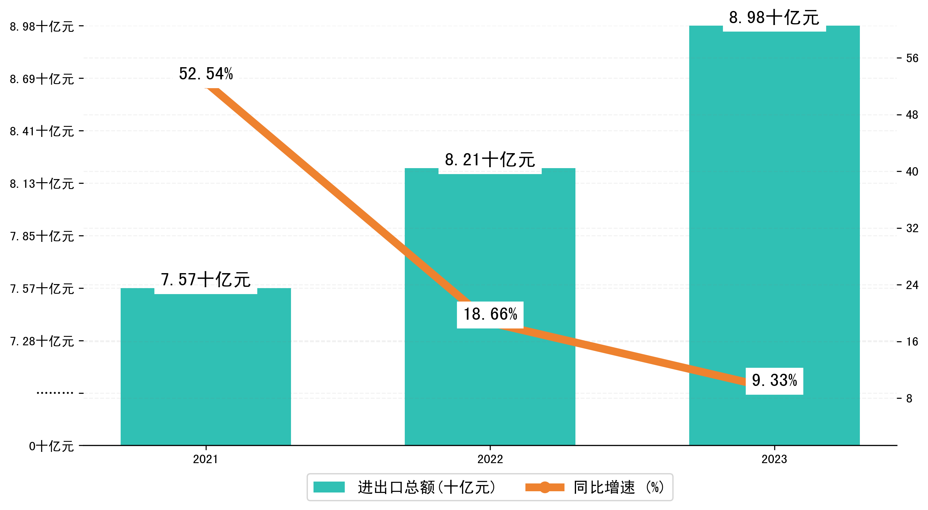 以人民币计,2023年1-10月六安市进出口总额为89,7714.2277万元,相比上年同期增加了7,6611.4013万元,同比增加了10.00%。