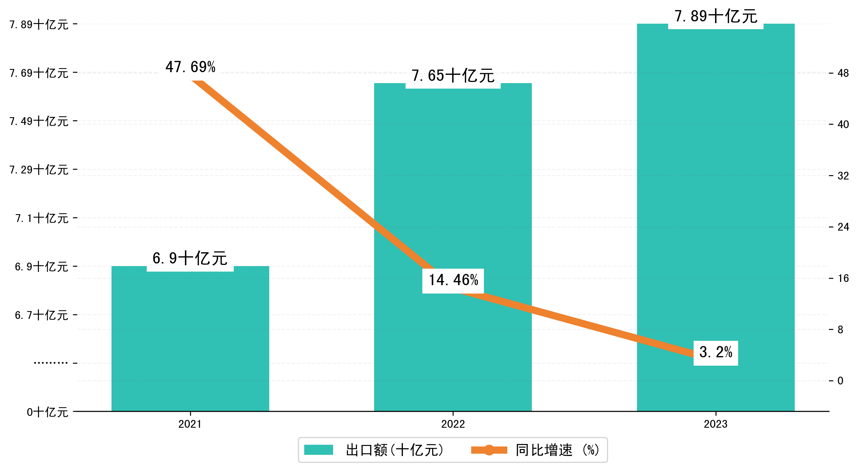 以人民币计,2023年1-10月六安市出口额为78,9281.8035万元,相比上年同期增加了2,4455.1701万元,同比增加了3.80%。