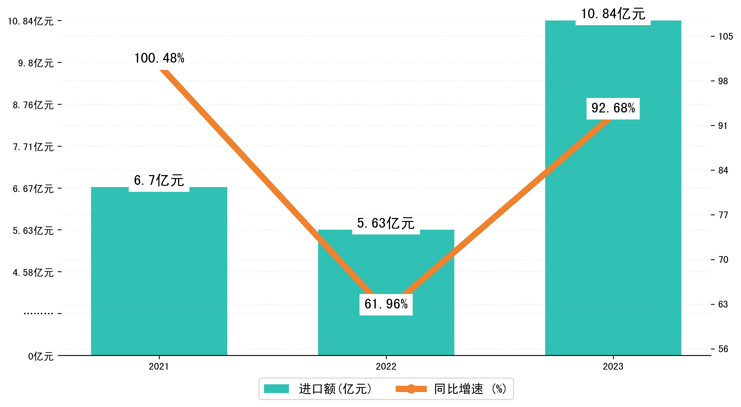 以人民币计,2023年1-10月六安市进口额为10,8432.4242万元,相比上年同期增加了5,2156.2312万元,同比增加了92.80%。
