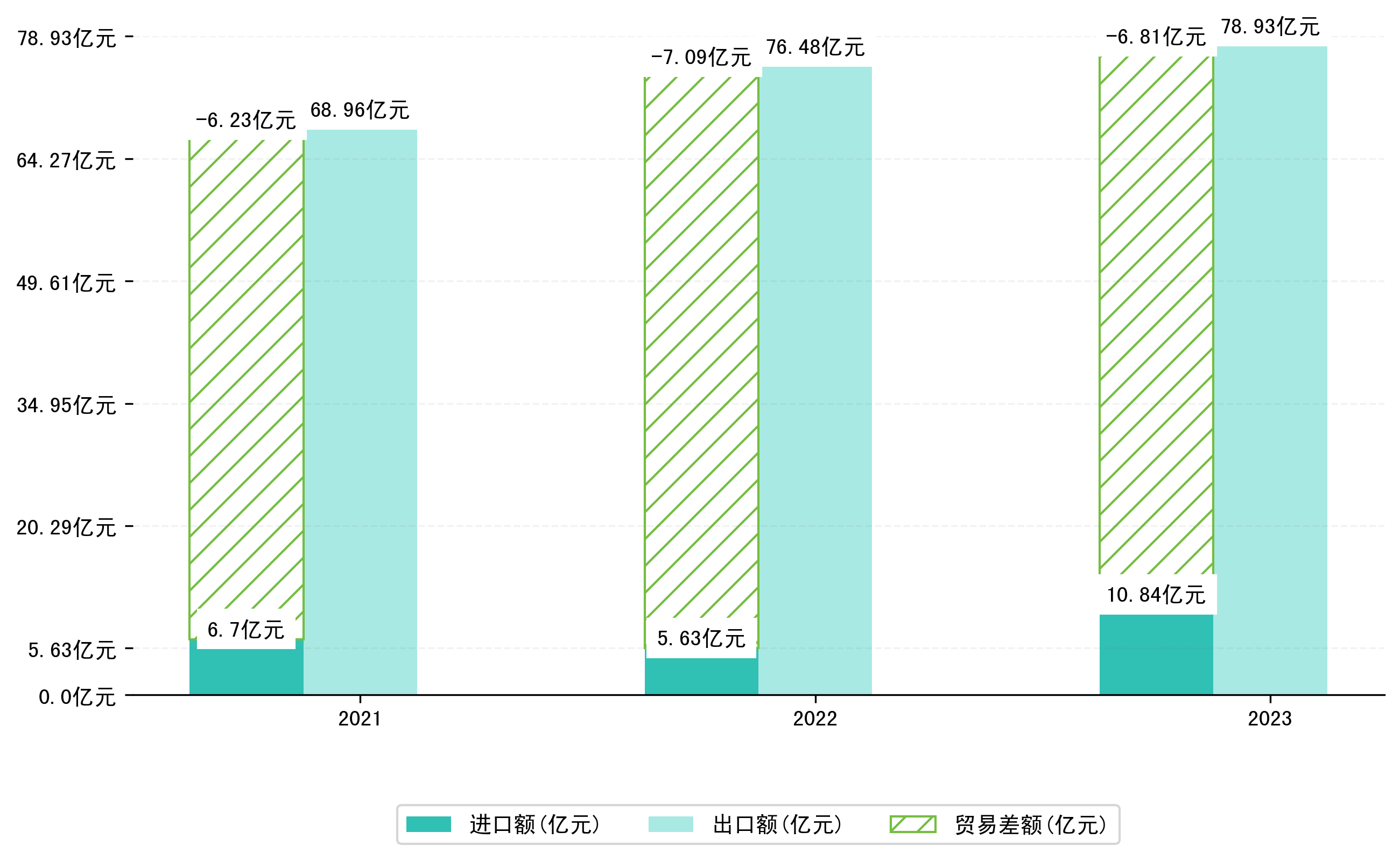 以人民币计,2023年1-10月六安市贸易差额为68,0849,3793万元(贸易顺差),相比上年同期减少了2,7701,0611万元,同比减少-3.91%。