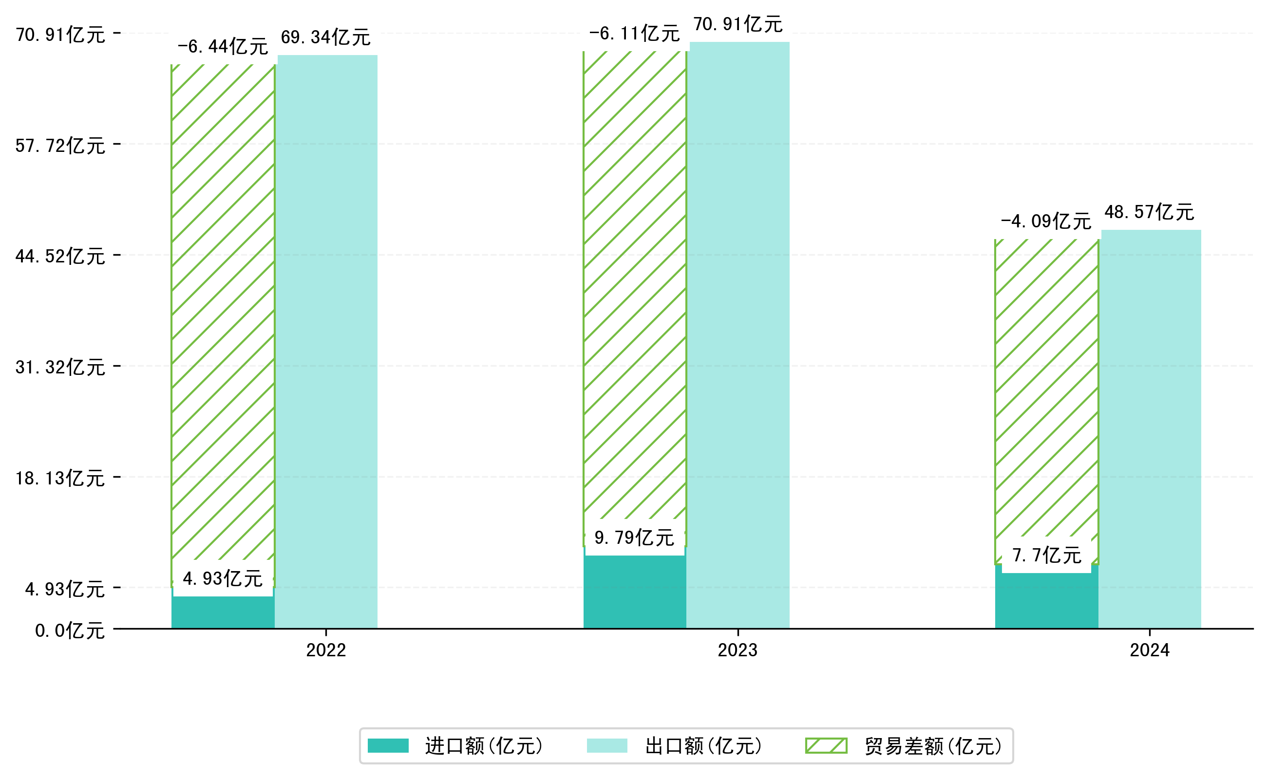 以美元计,2024年1-9月六安市贸易差额为5,7453,4548万美元(贸易顺差),相比上年同期减少了3,0126,0322万美元,同比减少-34.4%。