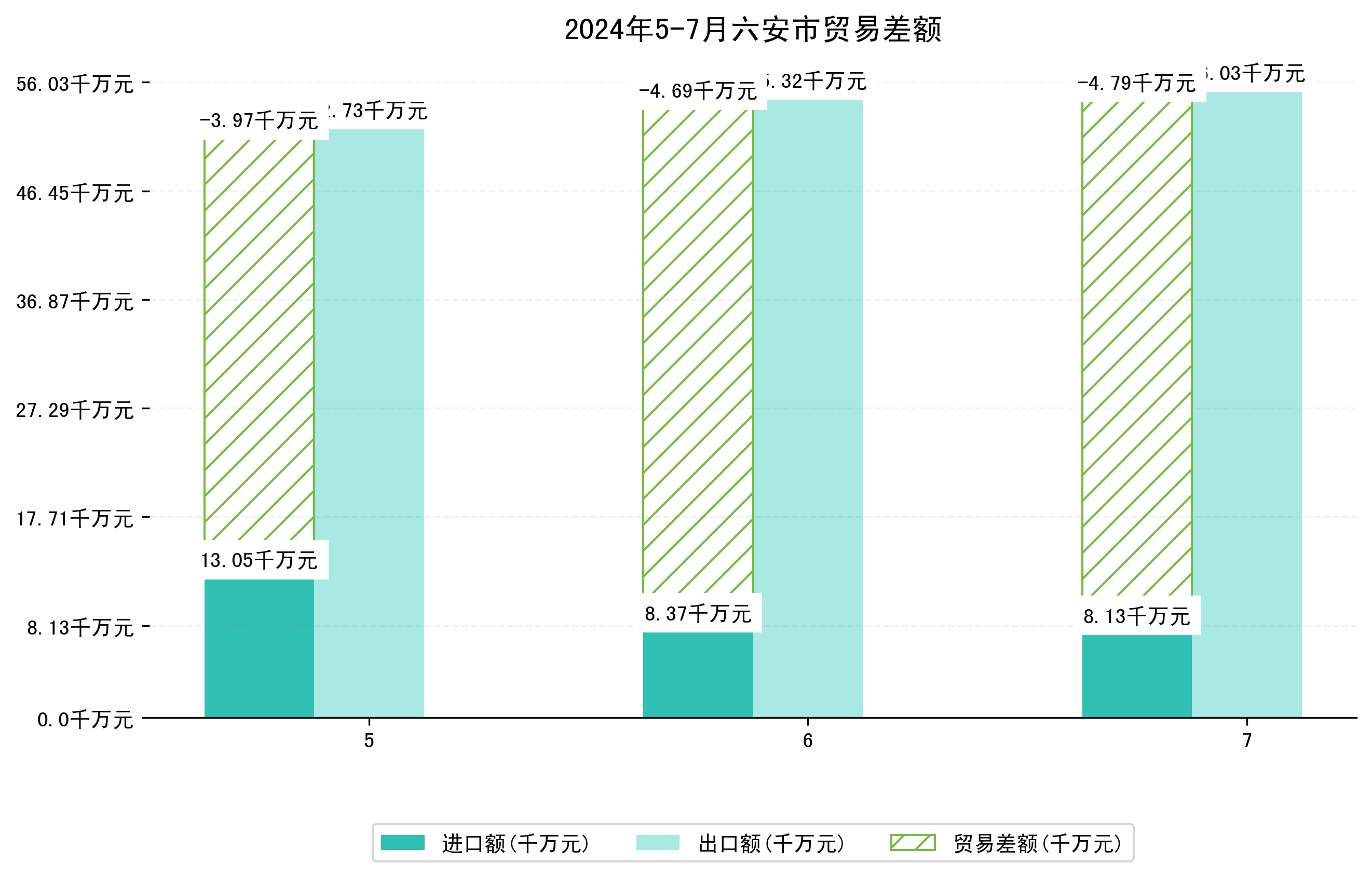 一、2024年7月六安市单月出口总额及进出口差额统计分析
