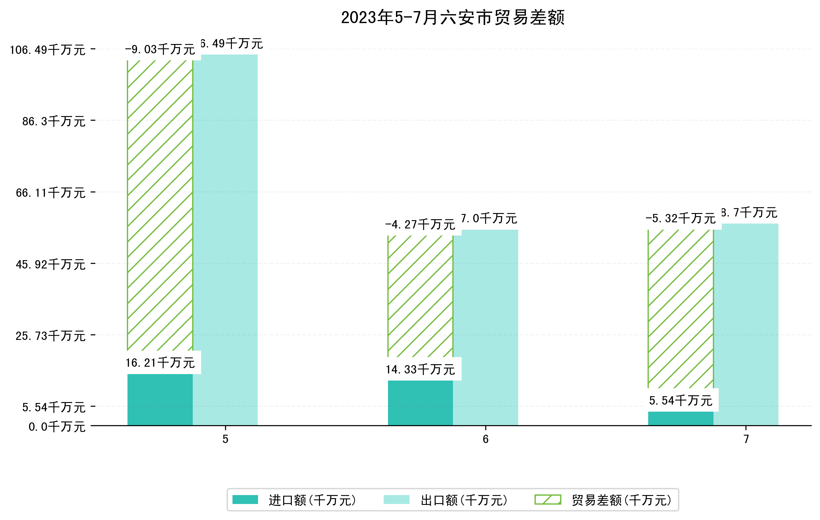 一、2023年7月六安市单月出口总额及进出口差额统计分析