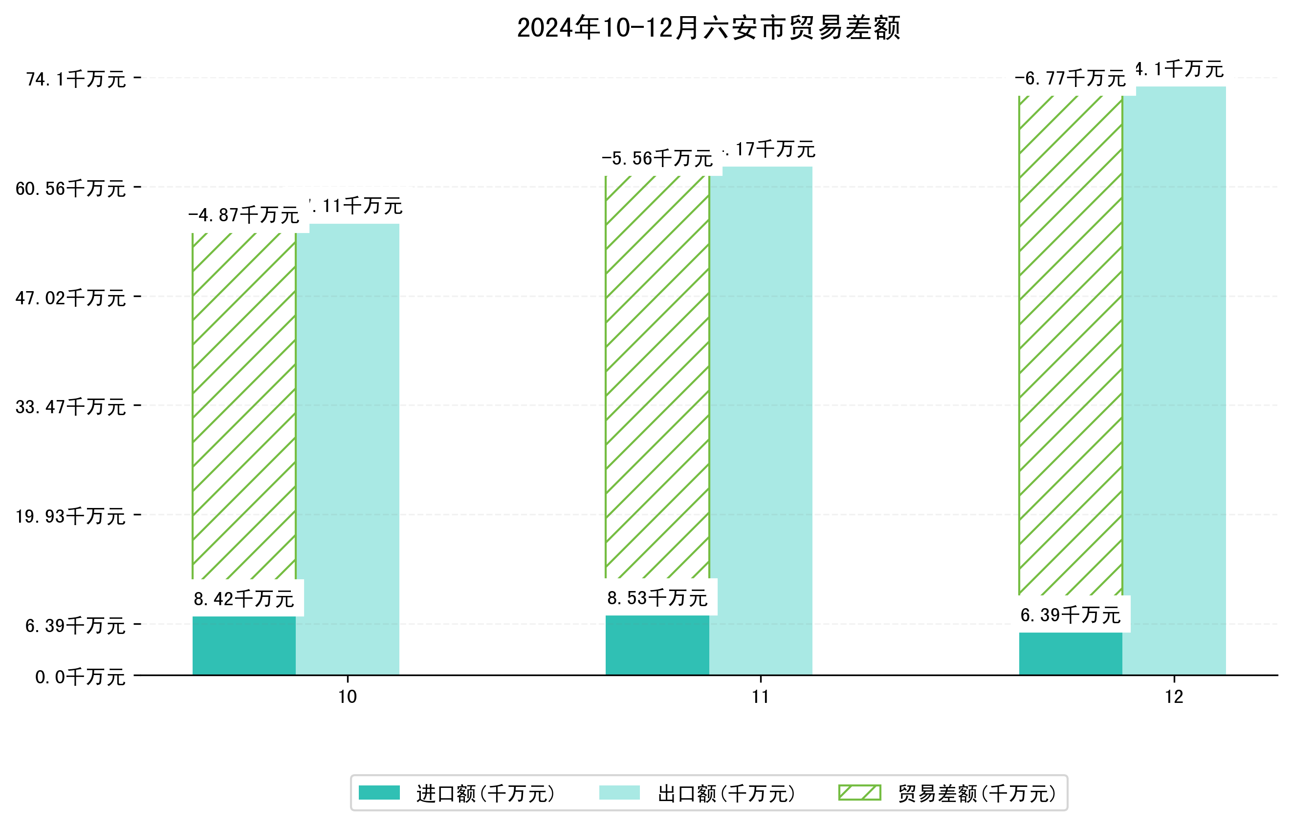 一、2024年12月六安市单月出口总额及进出口差额统计分析