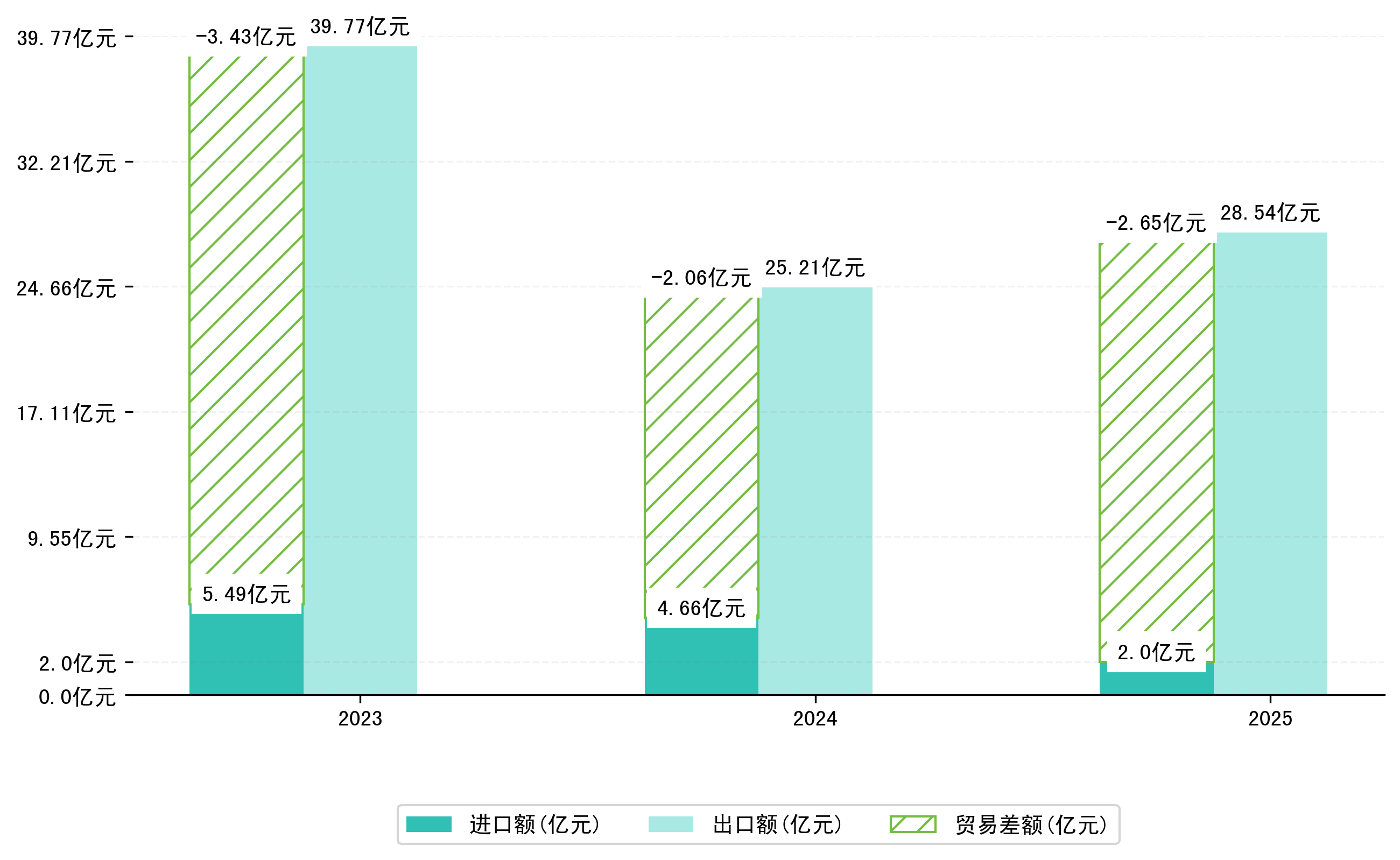 以人民币计,2025年1-5月六安市贸易差额为26,5397,2765万元(贸易顺差),相比上年同期增加了5,9826,2850万元,同比增加29.1%。