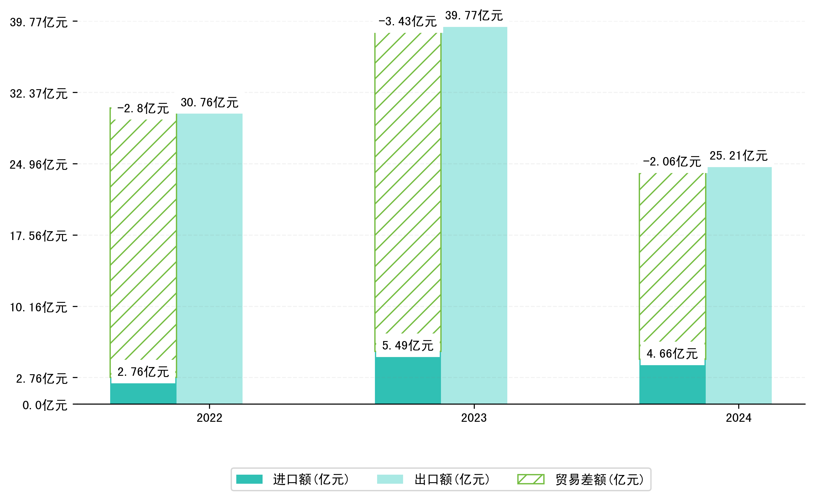 以人民币计,2024年1-5月六安市贸易差额为20,5570,9915万元(贸易顺差),相比上年同期减少了13,7210,5935万元,同比减少-40.03%。