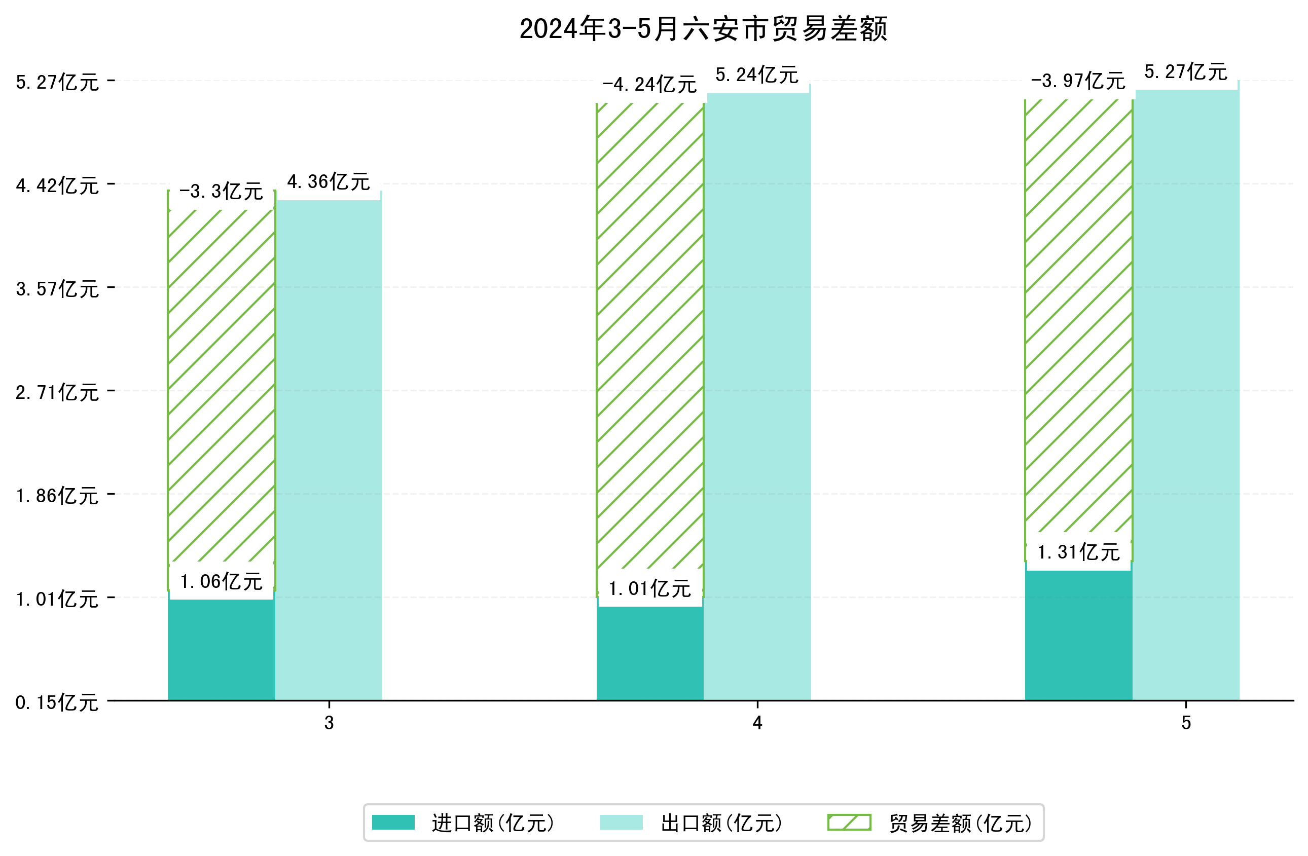 (图一:2024年3-5月六安市进出口总额)