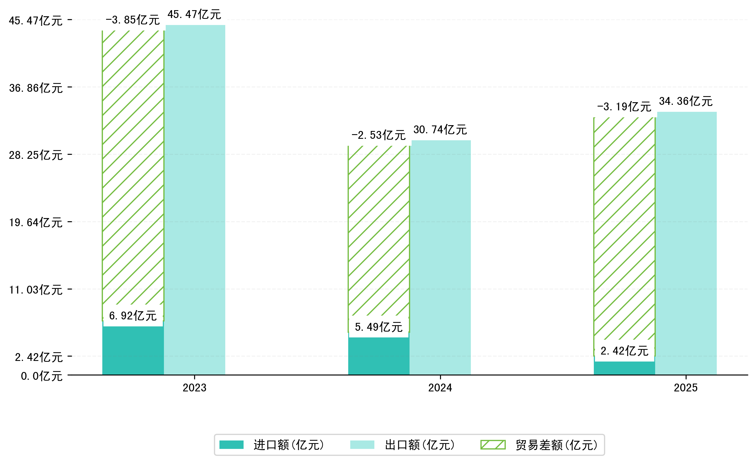 以人民币计,2025年1-6月六安市贸易差额为31,9414,4024万元(贸易顺差),相比上年同期增加了6,6909,8490万元,同比增加26.5%。