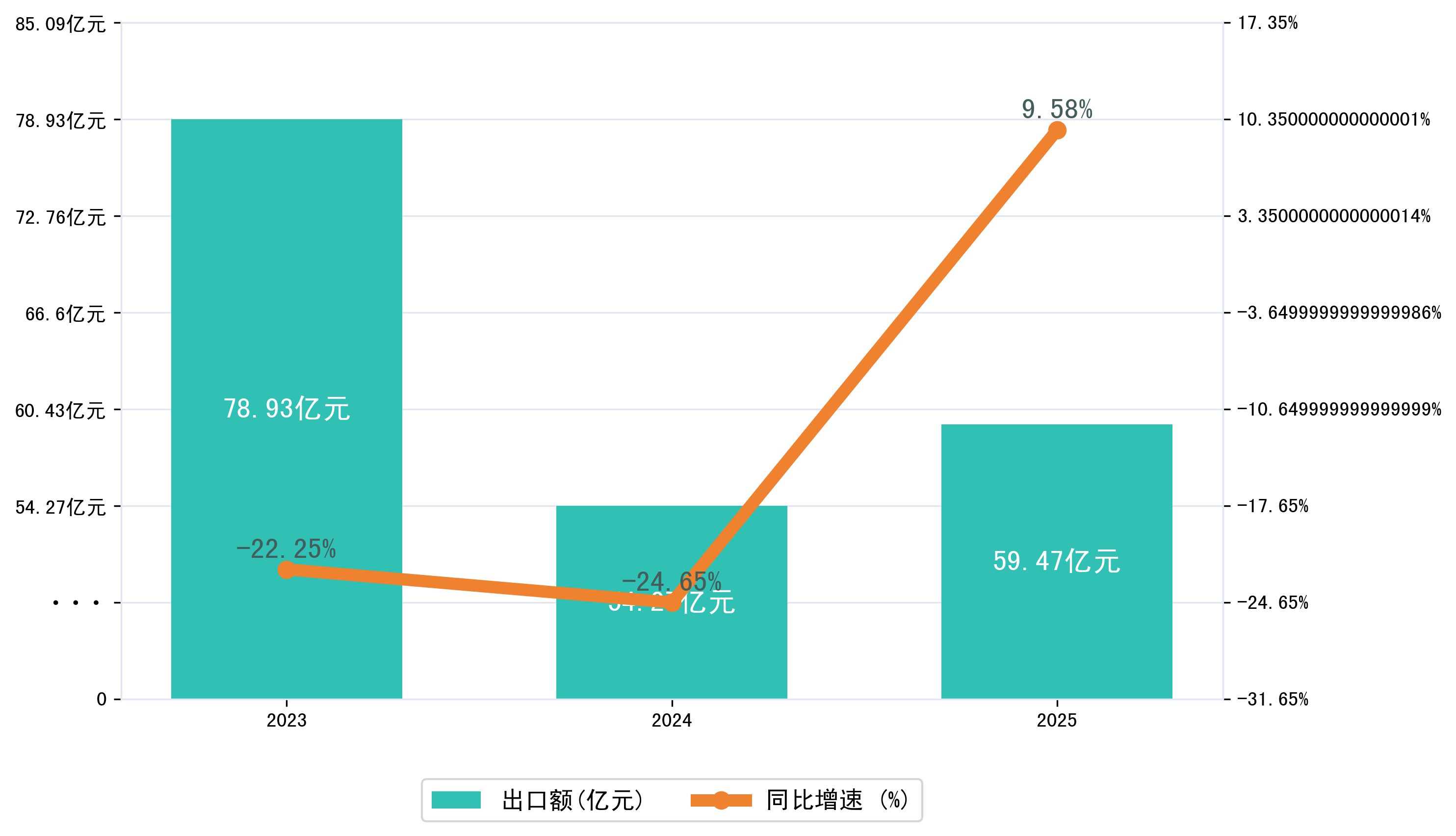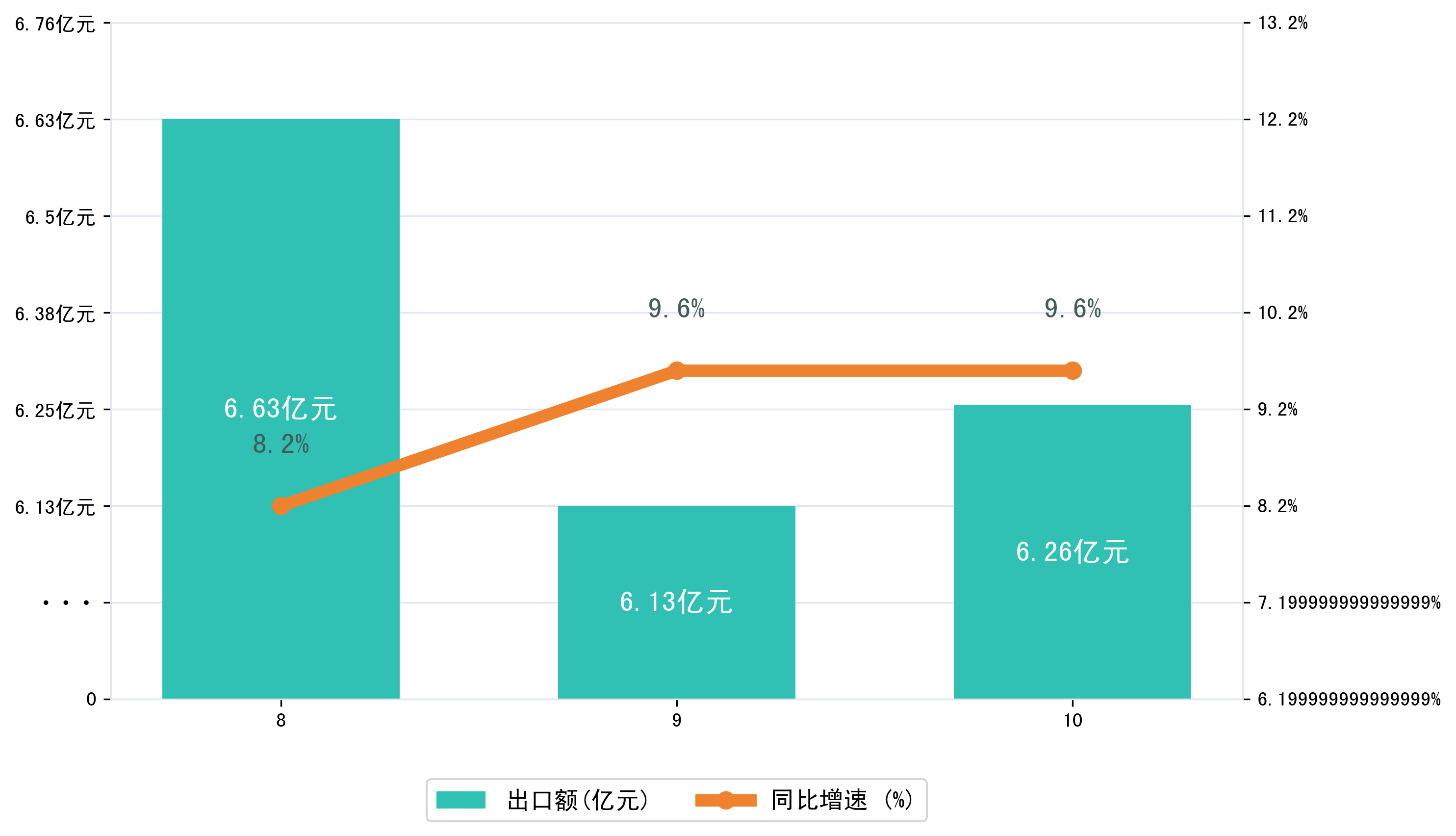 以人民币计,2025年1-10月六安市出口额为59,4685.7865万元,相比上年同期增加了5,2013.5731万元,同比增加了9.60%。
