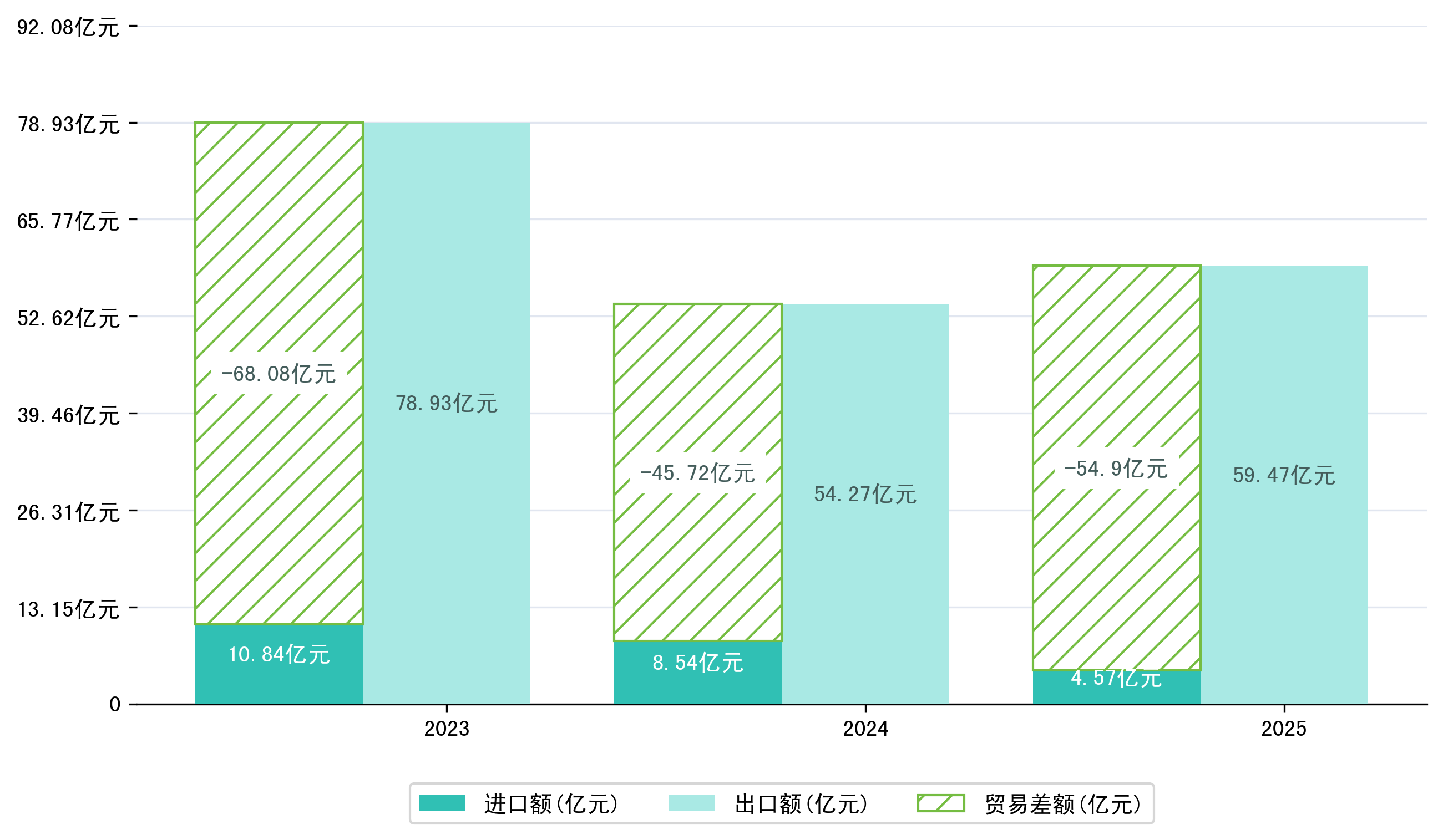 以人民币计,2025年1-10月六安市贸易差额为54,9014,0675万元(贸易顺差),相比上年同期增加了9,1776,0847万元,同比增加20.07%。