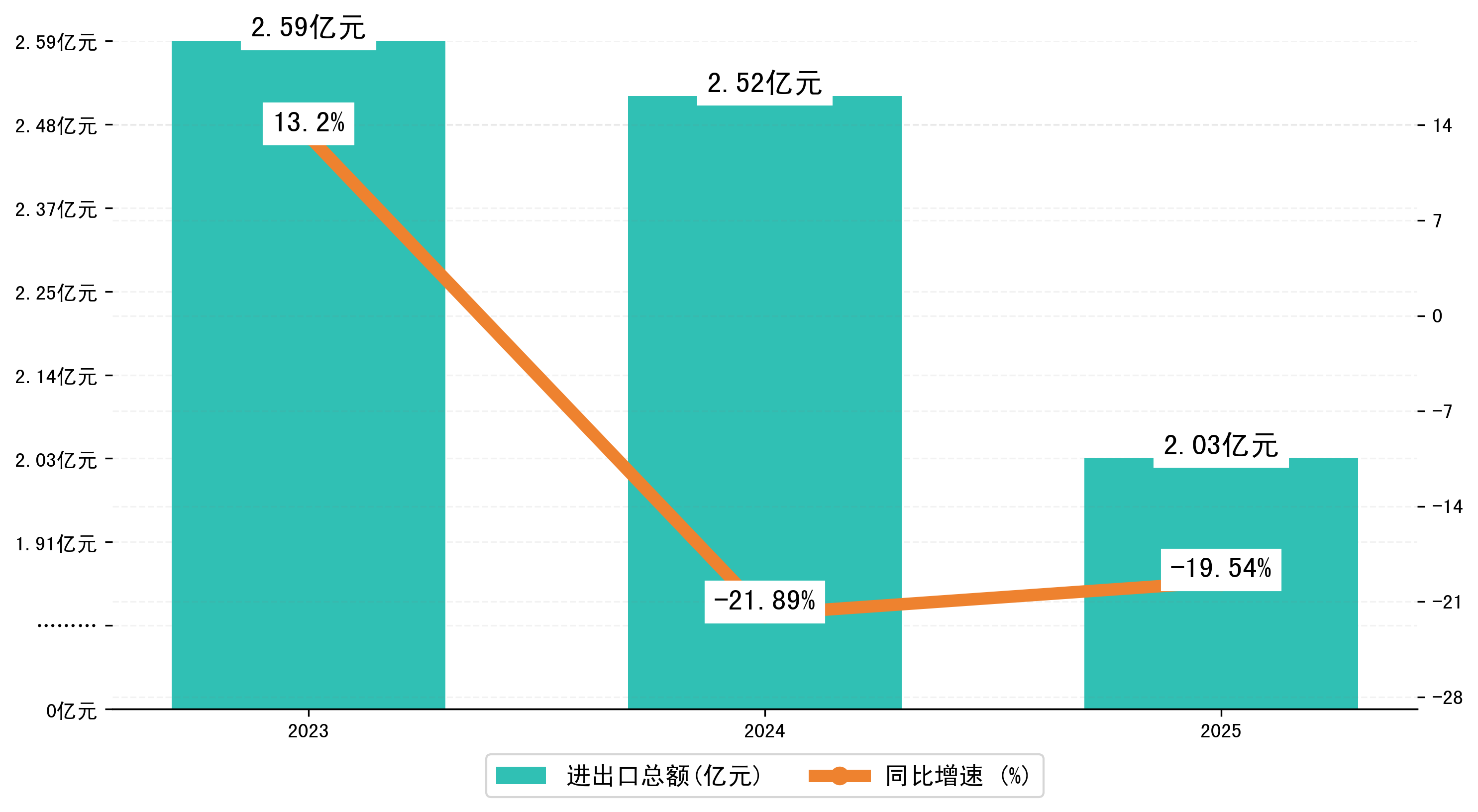 以人民币计,2025年1-2月长治市进出口总额为2,0269.0449万元,相比上年同期减少了4923.358万元,同比减少了-17.50%。
