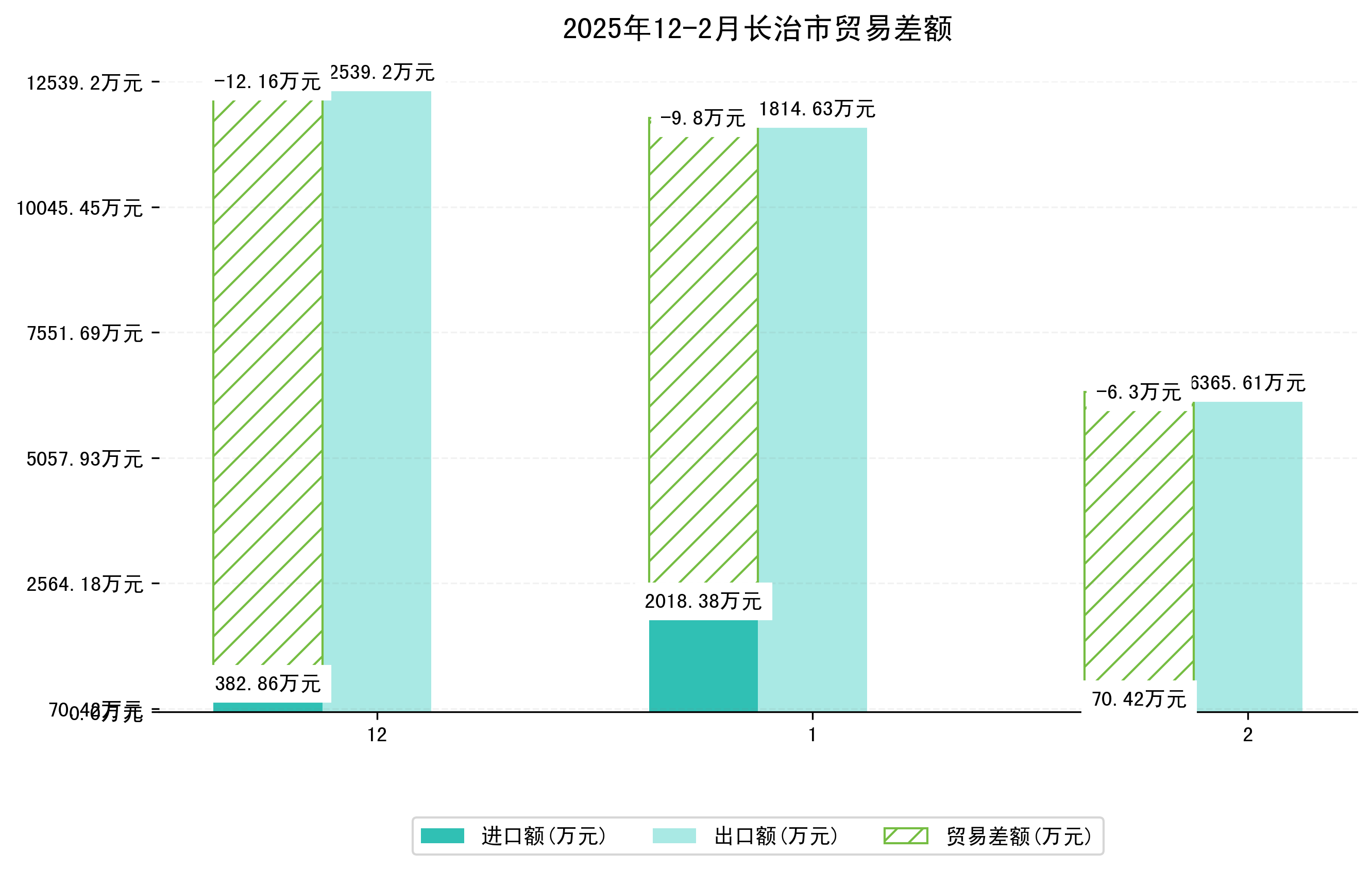一、2025年2月长治市单月出口总额及进出口差额统计分析