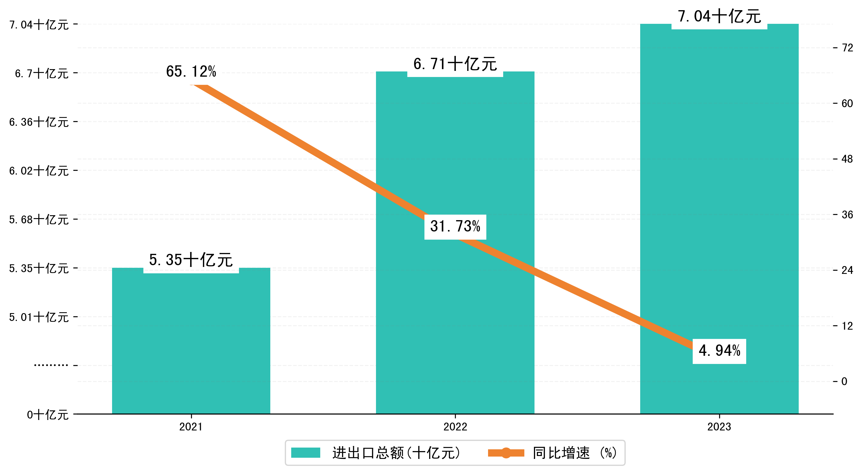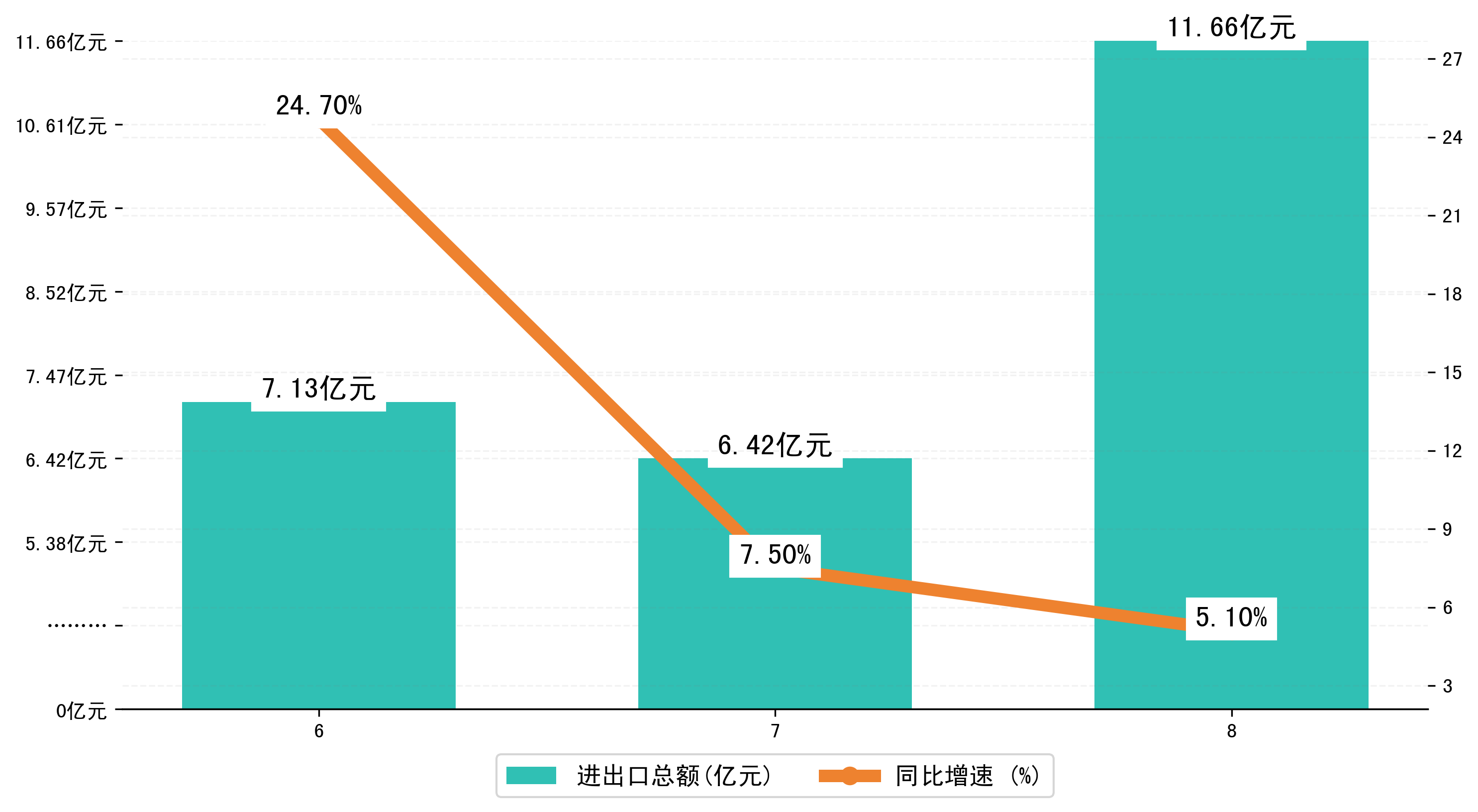 以人民币计,2023年1-8月六安市进出口总额为70,4113.6004万元,相比上年同期增加了3,3120.3855万元,同比增加了5.10%。