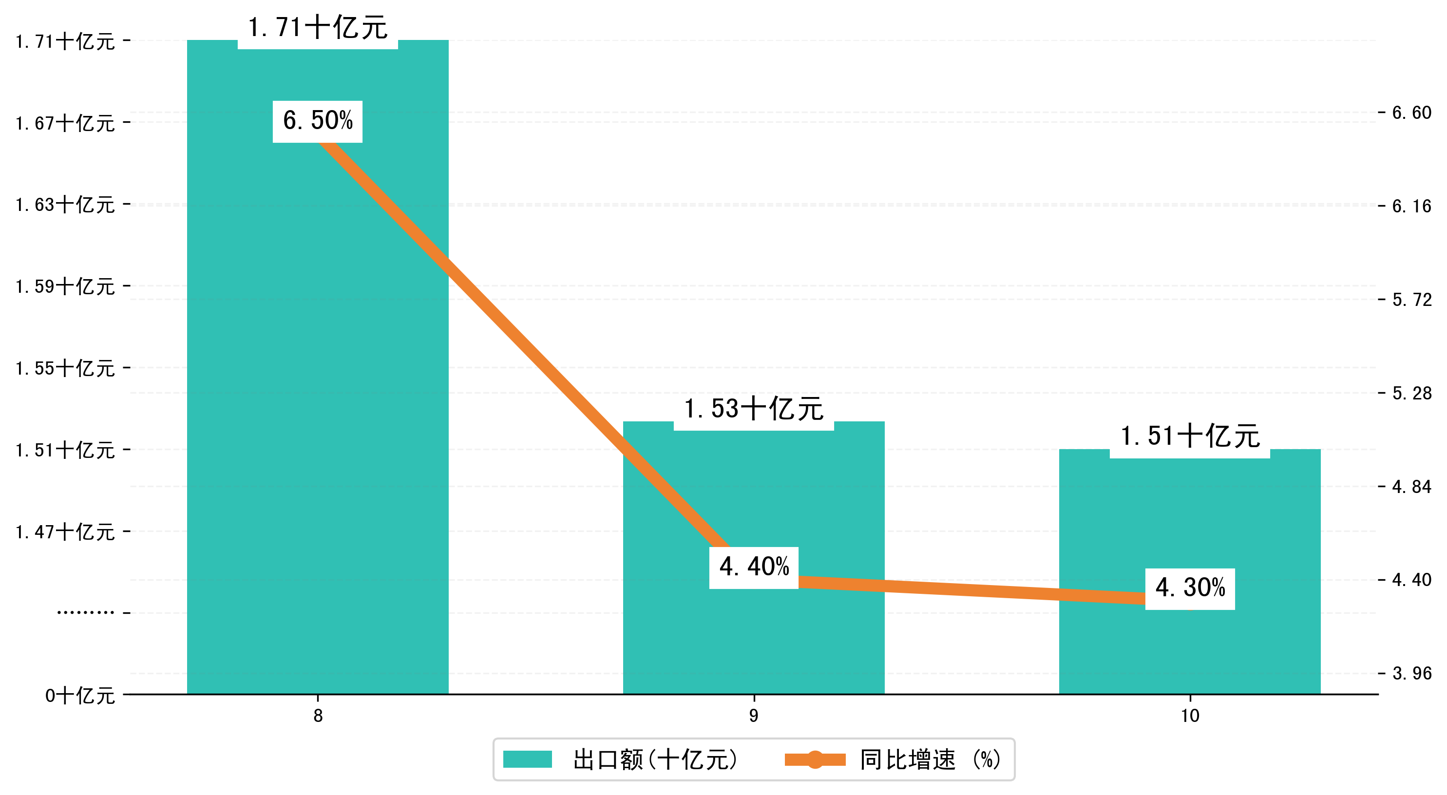 (图二:2024年8-10月洛阳市出口额)