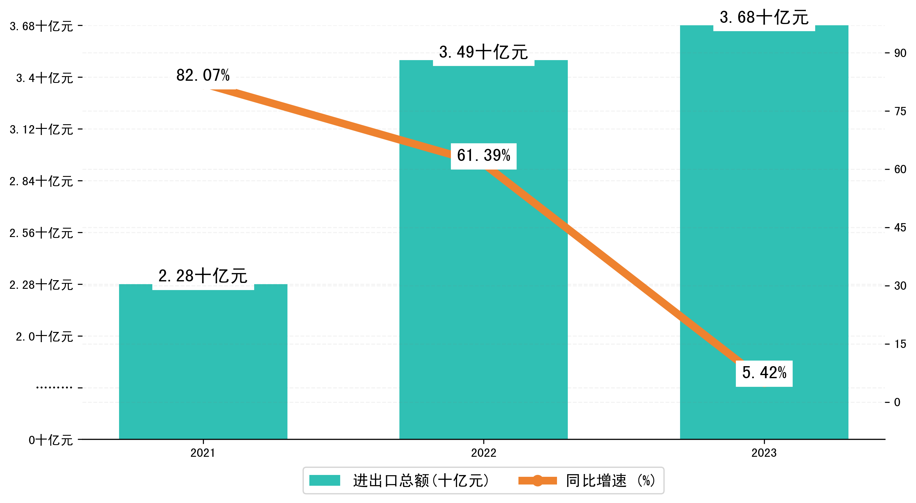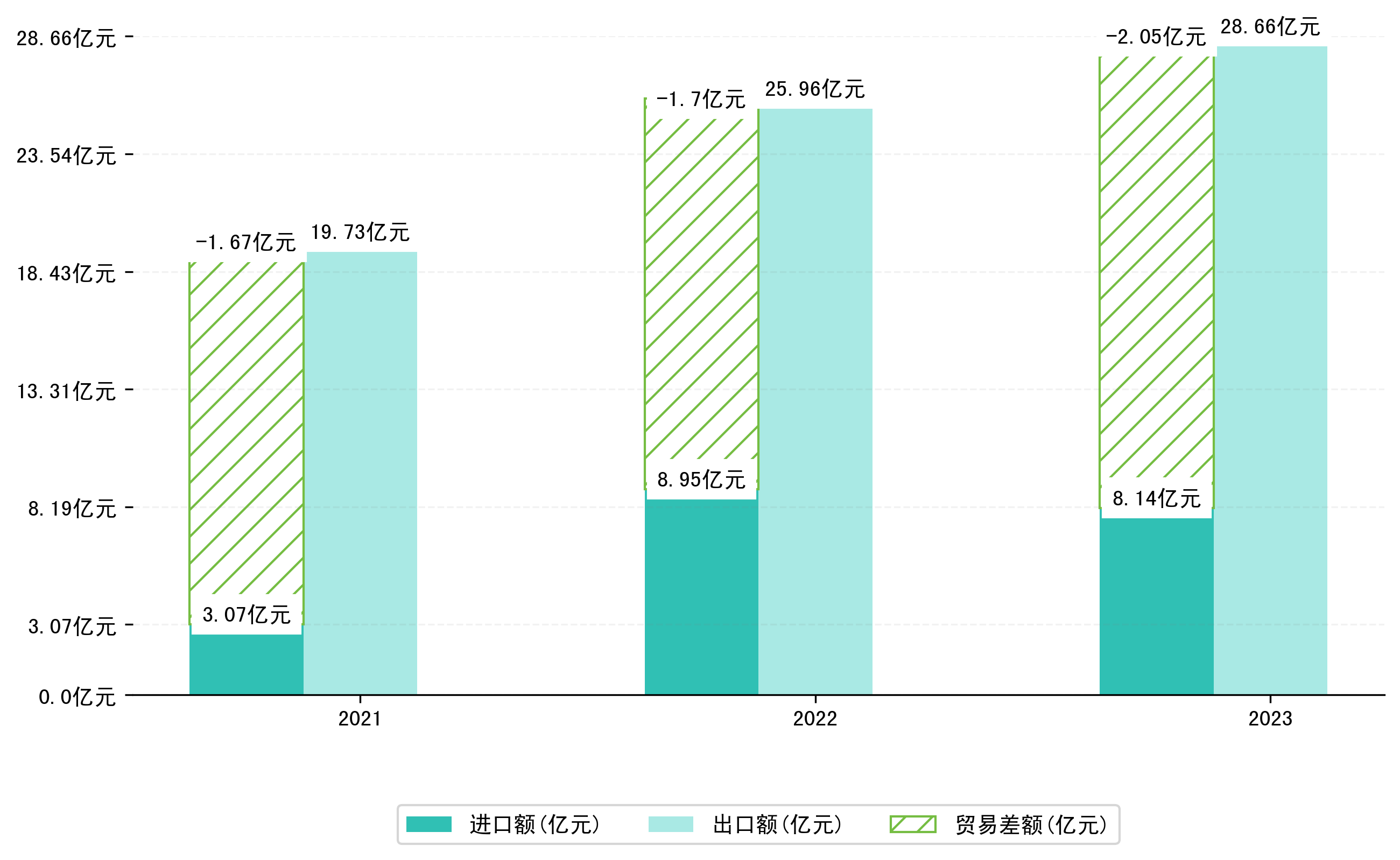 以人民币计,2023年2月洛阳市贸易差额为6,8991,6404万元(贸易顺差),相比上月减少了6,7270,3812万元,即9351,6377万美元;相比上年同期增加了2954,5368万元,同比增加4.47%。