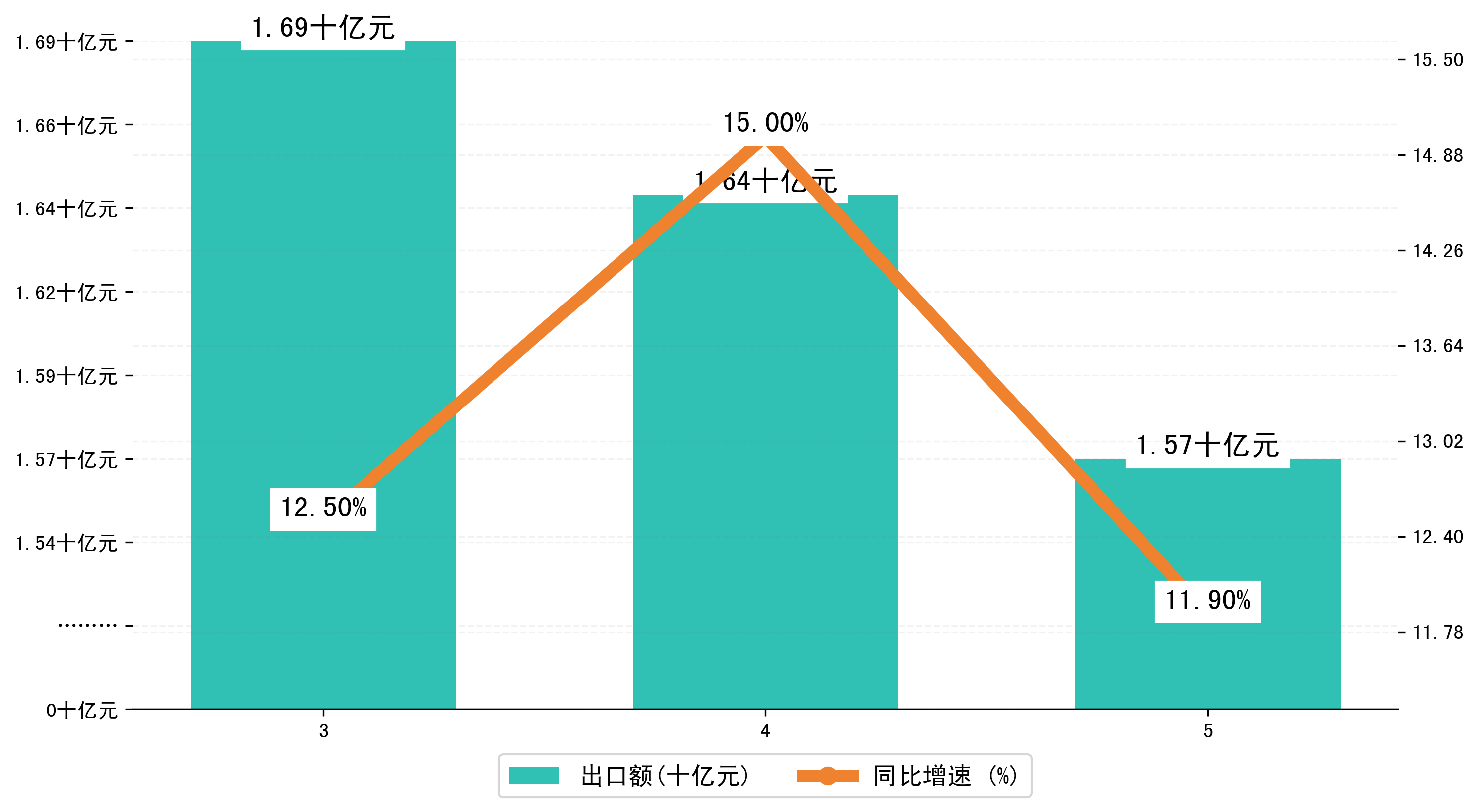 以人民币计,2023年5月洛阳市出口额为15,6827.0045万元,相比上月减少了7451.9048万元;相比上年同期增加了1296.4271万元,同比增加了11.90%。