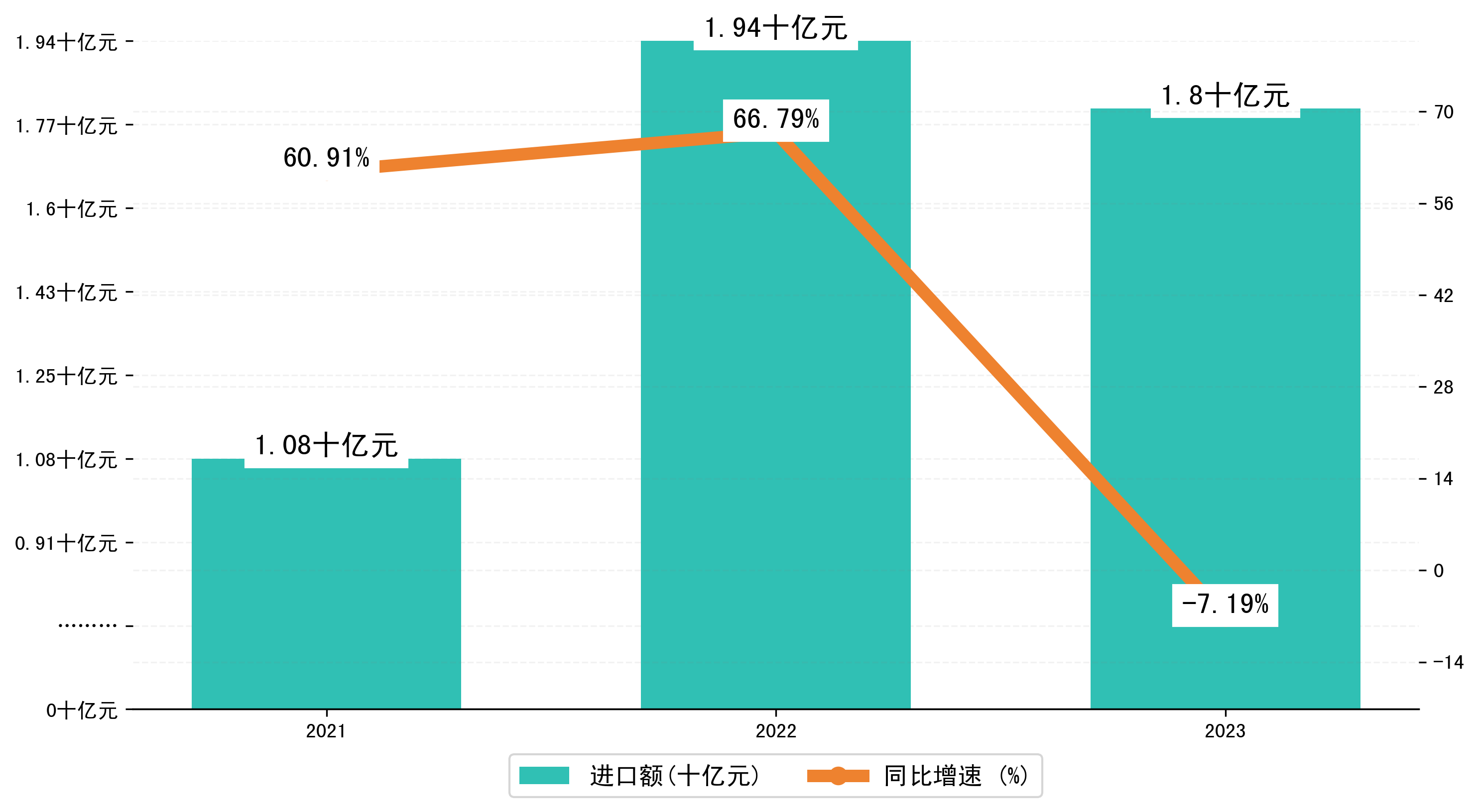 以人民币计,2023年1-5月洛阳市进口额为18,0469.1344万元,相比上年同期减少了1,3985.2533万元,同比增加了3.60%。