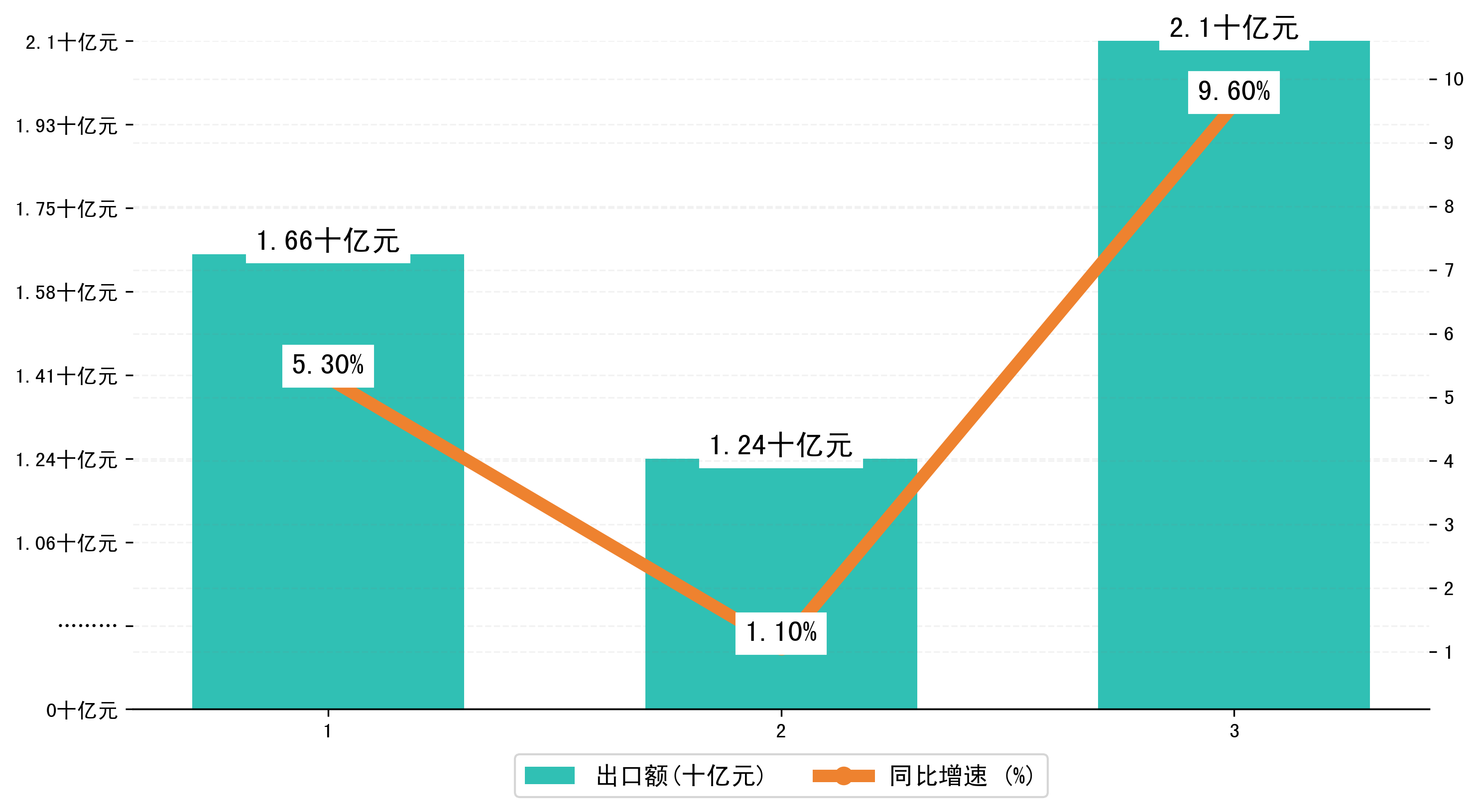 以美元计,2024年1-3月洛阳市进出口总额为8,5184.6836万美元,相比上年同期增加了2566.5905万美元,同比增加3.00%。